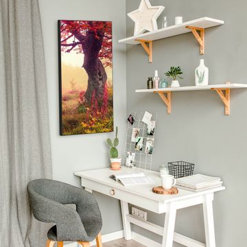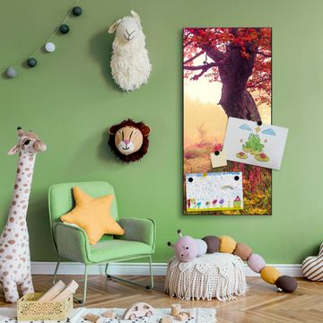 FUNKTION:  Die banjado Magnettafel mit Motiv Lichtung Im Herbst Motiv bringt Ordnung in Ihr Zettelchaos. Fotos, Termine, Notizen oder Rezepte lassen Sich hier stilvoll mit Magneten ordnen, Sie behalten alles im Blick. An der Design Magnettafel halten alle handesüblichen Magnete. DESIGN:  Die magnetische Pinnwand mit dem Motiv Motiv Lichtung Im Herbst ist ein eleganter Begleiter im Alltag. Mit dieser Memotafel aus Metall haben Sie auch ohne Notizen und Magnete ein schönes Dekoelement. Das Format bietet Ihnen ausreichend Platz um alle wichtigen Informationen im Blick zu behalten. DETAILS:  Die Magnettafel besteht aus silber-grau, weiß oder schwarzlackiertem Stahl. Sie hat eine Größe von 37 x 78 x 2cm. Es befinden sich auf der Rückseite vorgefertigte Aufhängungen die eine schnelle und unkomplizierte Anbringung ermöglichen. Das Motiv ist mit einem seidenmatten Laminat versehen und schützt so zusätzlich vor Kratzern. NUTZEN:  Sie können dieses Memoboard groß als Wandbild nutzen, es halten alle handelsüblichen Magneten daran. Die Pinnwand ist mit einem feuchten Lappen oder Schwamm abwischbar. Sie finden bei uns eine große Auswahl an passenden Magneten. BANJADO:  Wir sind ein kleines Team aus dem Herzen von Sachsen. Wir fertigen alle Artikel von Hand für Sie an, Sie erhalten keine preiswerte Importware. Auf Wunsch können Sie auch Ihr eigenes Foto auf die Magnettafel aufbringen, schreiben Sie uns an. Herzlichst, Ihr banjado-Team