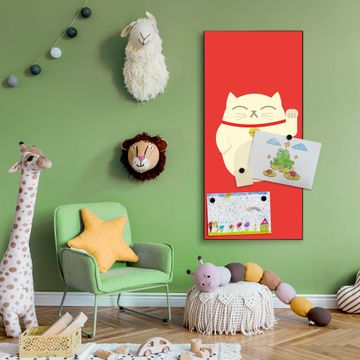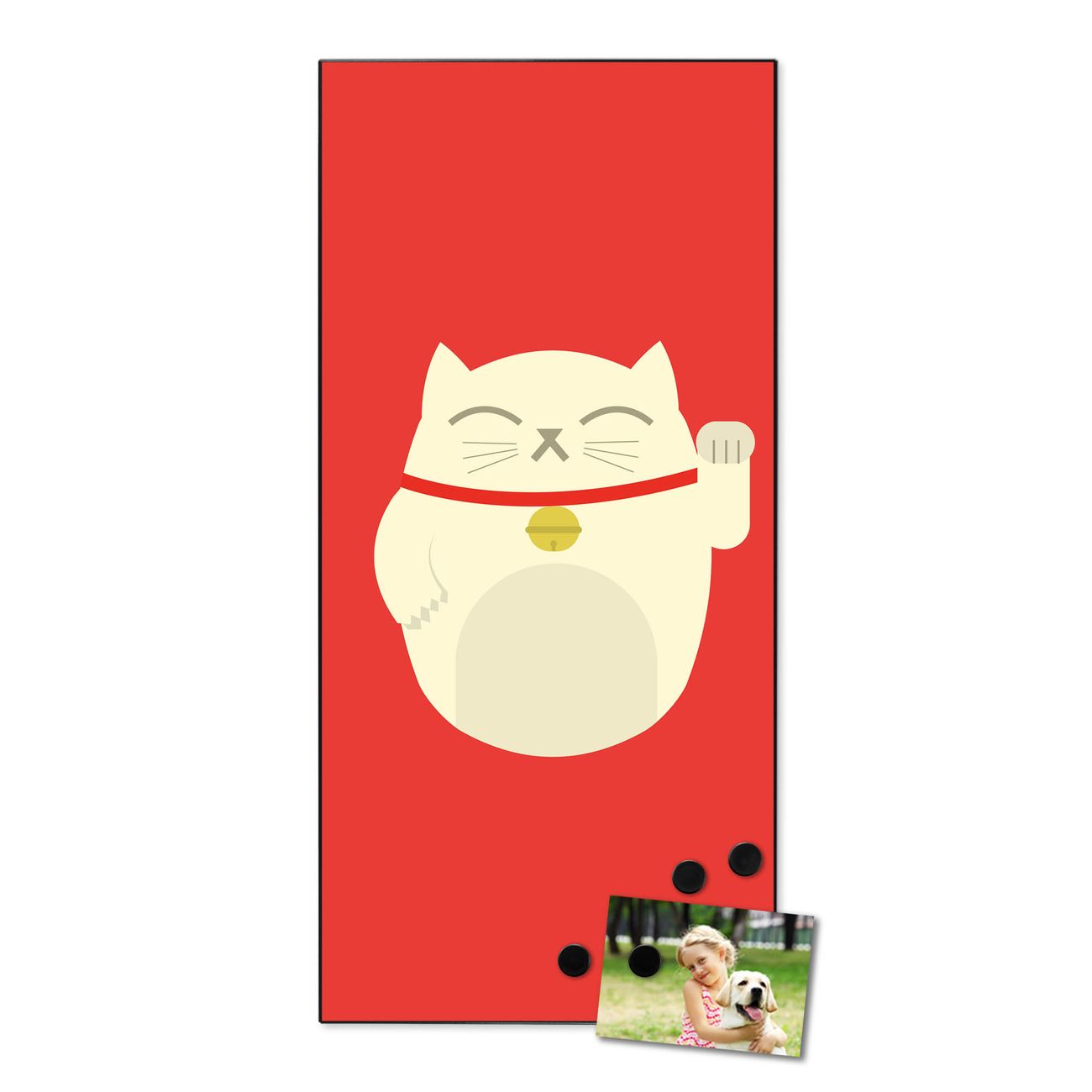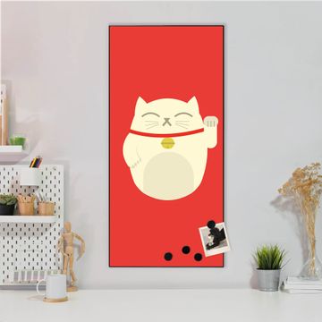 FUNKTION:  Die banjado Magnettafel mit Motiv Manekineko Motiv bringt Ordnung in Ihr Zettelchaos. Fotos, Termine, Notizen oder Rezepte lassen Sich hier stilvoll mit Magneten ordnen, Sie behalten alles im Blick. An der Design Magnettafel halten alle handesüblichen Magnete. DESIGN:  Die magnetische Pinnwand mit dem Motiv Motiv Manekineko ist ein eleganter Begleiter im Alltag. Mit dieser Memotafel aus Metall haben Sie auch ohne Notizen und Magnete ein schönes Dekoelement. Das Format bietet Ihnen ausreichend Platz um alle wichtigen Informationen im Blick zu behalten. DETAILS:  Die Magnettafel besteht aus silber-grau, weiß oder schwarzlackiertem Stahl. Sie hat eine Größe von 37 x 78 x 2cm. Es befinden sich auf der Rückseite vorgefertigte Aufhängungen die eine schnelle und unkomplizierte Anbringung ermöglichen. Das Motiv ist mit einem seidenmatten Laminat versehen und schützt so zusätzlich vor Kratzern. NUTZEN:  Sie können dieses Memoboard groß als Wandbild nutzen, es halten alle handelsüblichen Magneten daran. Die Pinnwand ist mit einem feuchten Lappen oder Schwamm abwischbar. Sie finden bei uns eine große Auswahl an passenden Magneten. BANJADO:  Wir sind ein kleines Team aus dem Herzen von Sachsen. Wir fertigen alle Artikel von Hand für Sie an, Sie erhalten keine preiswerte Importware. Auf Wunsch können Sie auch Ihr eigenes Foto auf die Magnettafel aufbringen, schreiben Sie uns an. Herzlichst, Ihr banjado-Team