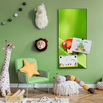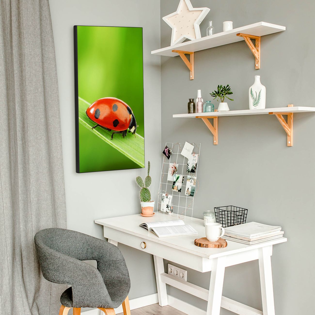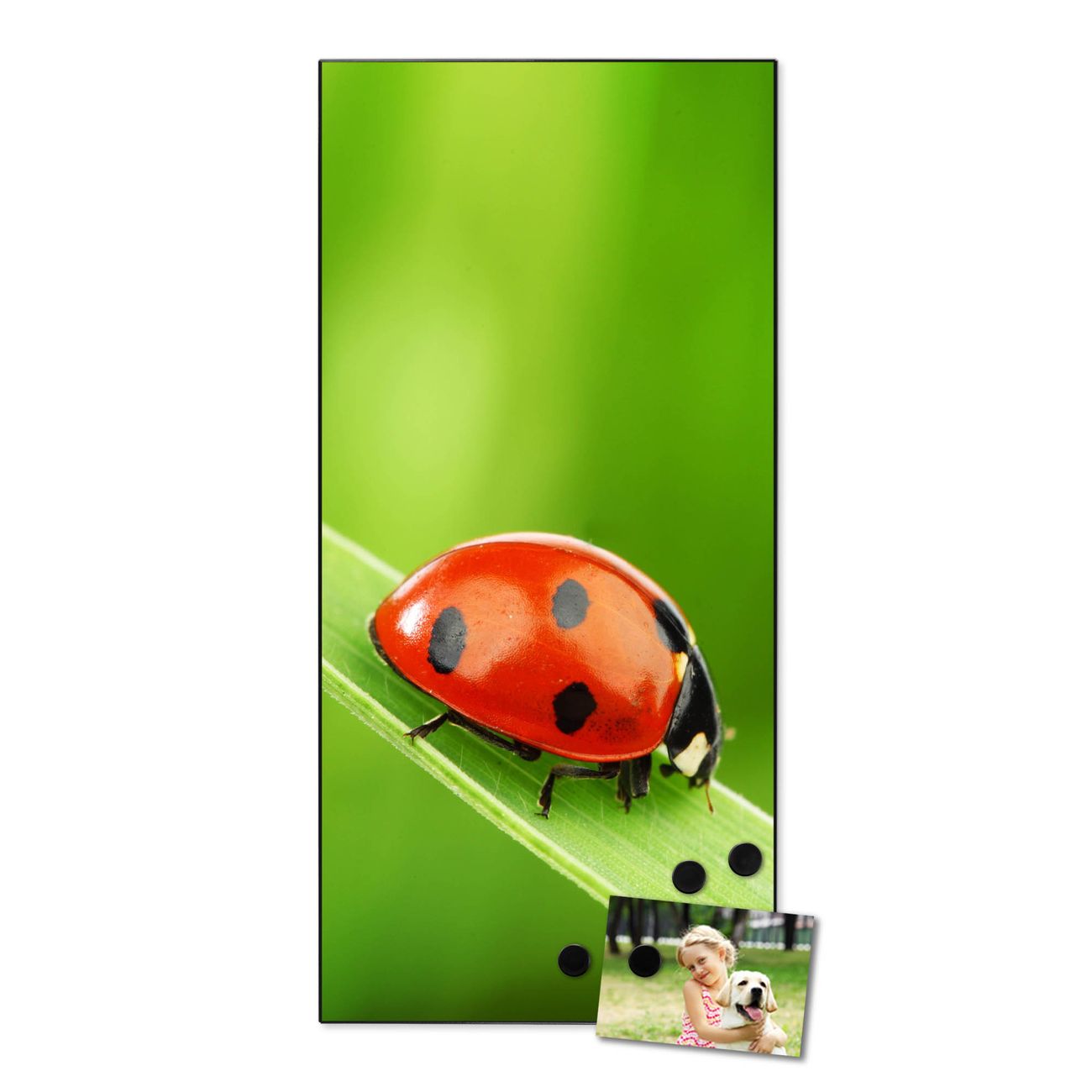 FUNKTION:  Die banjado Magnettafel mit Motiv Marienkäfer Motiv bringt Ordnung in Ihr Zettelchaos. Fotos, Termine, Notizen oder Rezepte lassen Sich hier stilvoll mit Magneten ordnen, Sie behalten alles im Blick. An der Design Magnettafel halten alle handesüblichen Magnete. DESIGN:  Die magnetische Pinnwand mit dem Motiv Motiv Marienkäfer ist ein eleganter Begleiter im Alltag. Mit dieser Memotafel aus Metall haben Sie auch ohne Notizen und Magnete ein schönes Dekoelement. Das Format bietet Ihnen ausreichend Platz um alle wichtigen Informationen im Blick zu behalten. DETAILS:  Die Magnettafel besteht aus silber-grau, weiß oder schwarzlackiertem Stahl. Sie hat eine Größe von 37 x 78 x 2cm. Es befinden sich auf der Rückseite vorgefertigte Aufhängungen die eine schnelle und unkomplizierte Anbringung ermöglichen. Das Motiv ist mit einem seidenmatten Laminat versehen und schützt so zusätzlich vor Kratzern. NUTZEN:  Sie können dieses Memoboard groß als Wandbild nutzen, es halten alle handelsüblichen Magneten daran. Die Pinnwand ist mit einem feuchten Lappen oder Schwamm abwischbar. Sie finden bei uns eine große Auswahl an passenden Magneten. BANJADO:  Wir sind ein kleines Team aus dem Herzen von Sachsen. Wir fertigen alle Artikel von Hand für Sie an, Sie erhalten keine preiswerte Importware. Auf Wunsch können Sie auch Ihr eigenes Foto auf die Magnettafel aufbringen, schreiben Sie uns an. Herzlichst, Ihr banjado-Team