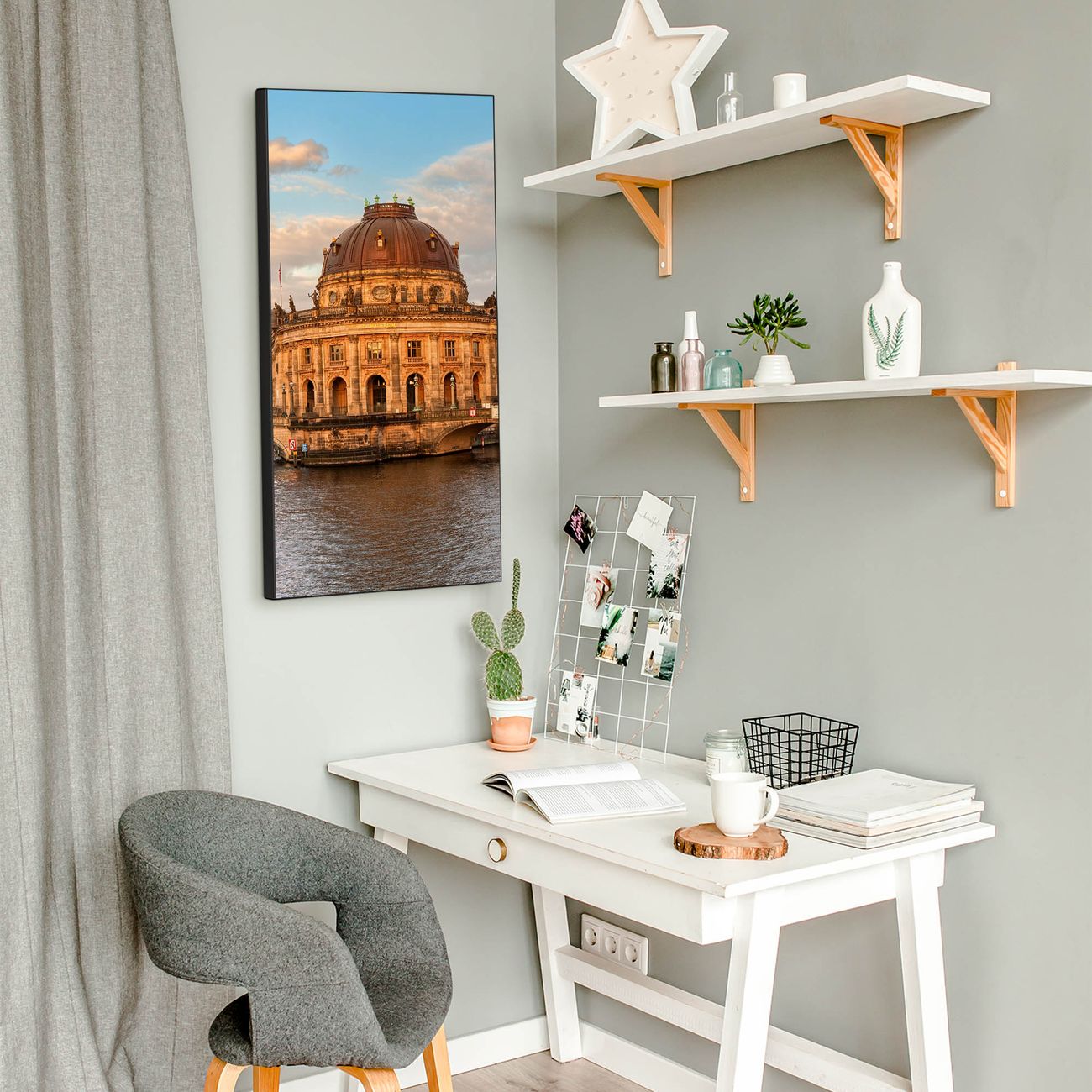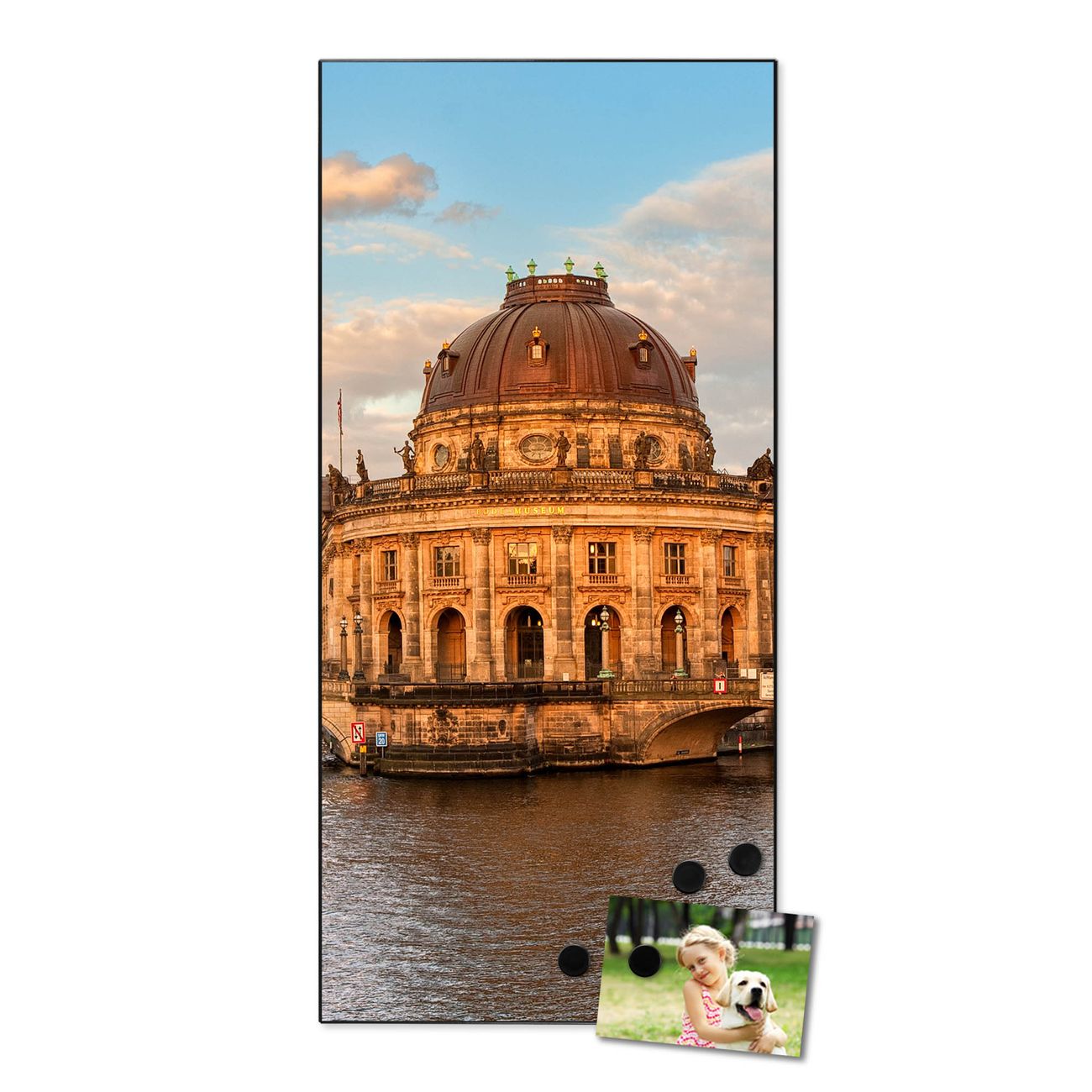 FUNKTION:  Die banjado Magnettafel mit Motiv Museumsinsel Motiv bringt Ordnung in Ihr Zettelchaos. Fotos, Termine, Notizen oder Rezepte lassen Sich hier stilvoll mit Magneten ordnen, Sie behalten alles im Blick. An der Design Magnettafel halten alle handesüblichen Magnete. DESIGN:  Die magnetische Pinnwand mit dem Motiv Motiv Museumsinsel ist ein eleganter Begleiter im Alltag. Mit dieser Memotafel aus Metall haben Sie auch ohne Notizen und Magnete ein schönes Dekoelement. Das Format bietet Ihnen ausreichend Platz um alle wichtigen Informationen im Blick zu behalten. DETAILS:  Die Magnettafel besteht aus silber-grau, weiß oder schwarzlackiertem Stahl. Sie hat eine Größe von 37 x 78 x 2cm. Es befinden sich auf der Rückseite vorgefertigte Aufhängungen die eine schnelle und unkomplizierte Anbringung ermöglichen. Das Motiv ist mit einem seidenmatten Laminat versehen und schützt so zusätzlich vor Kratzern. NUTZEN:  Sie können dieses Memoboard groß als Wandbild nutzen, es halten alle handelsüblichen Magneten daran. Die Pinnwand ist mit einem feuchten Lappen oder Schwamm abwischbar. Sie finden bei uns eine große Auswahl an passenden Magneten. BANJADO:  Wir sind ein kleines Team aus dem Herzen von Sachsen. Wir fertigen alle Artikel von Hand für Sie an, Sie erhalten keine preiswerte Importware. Auf Wunsch können Sie auch Ihr eigenes Foto auf die Magnettafel aufbringen, schreiben Sie uns an. Herzlichst, Ihr banjado-Team