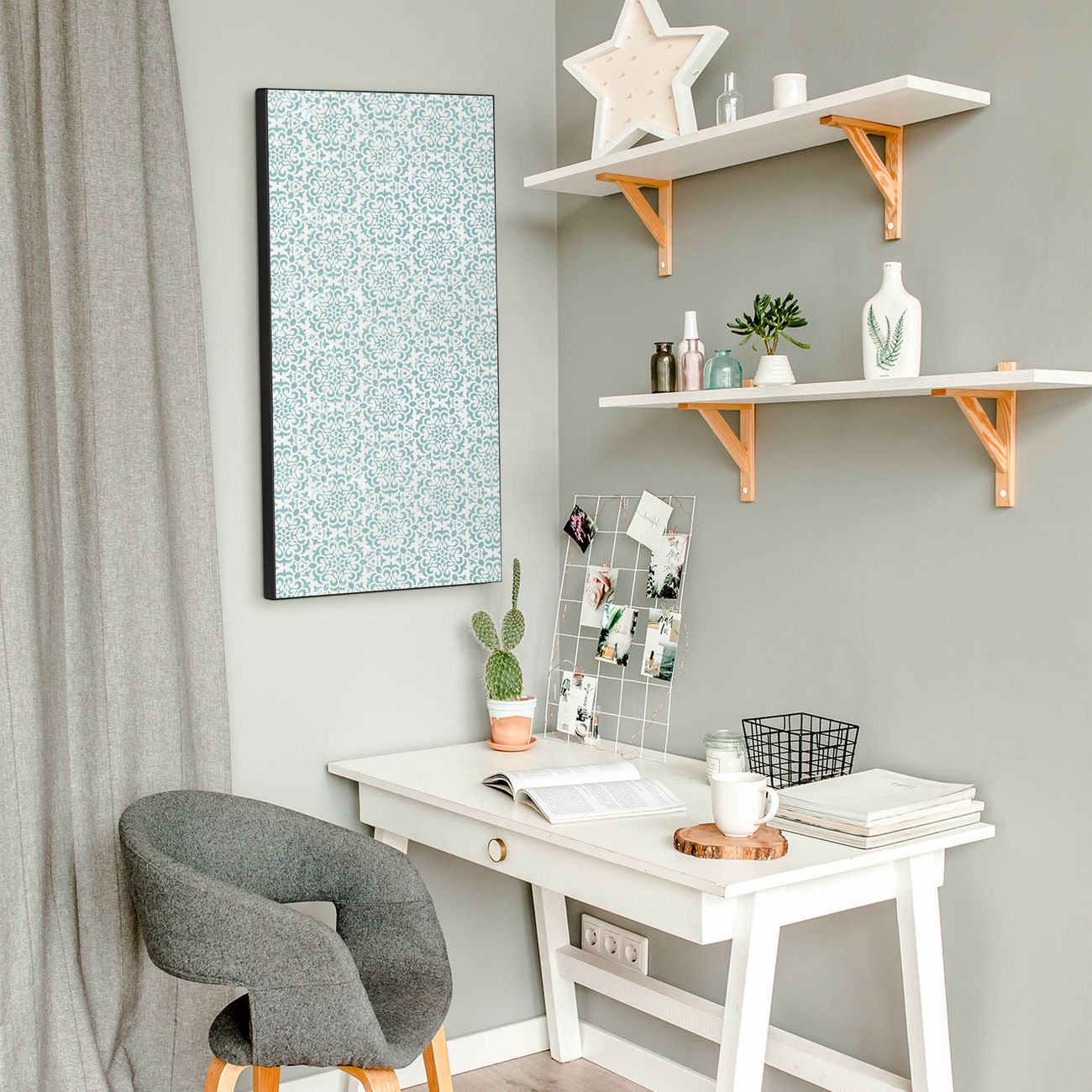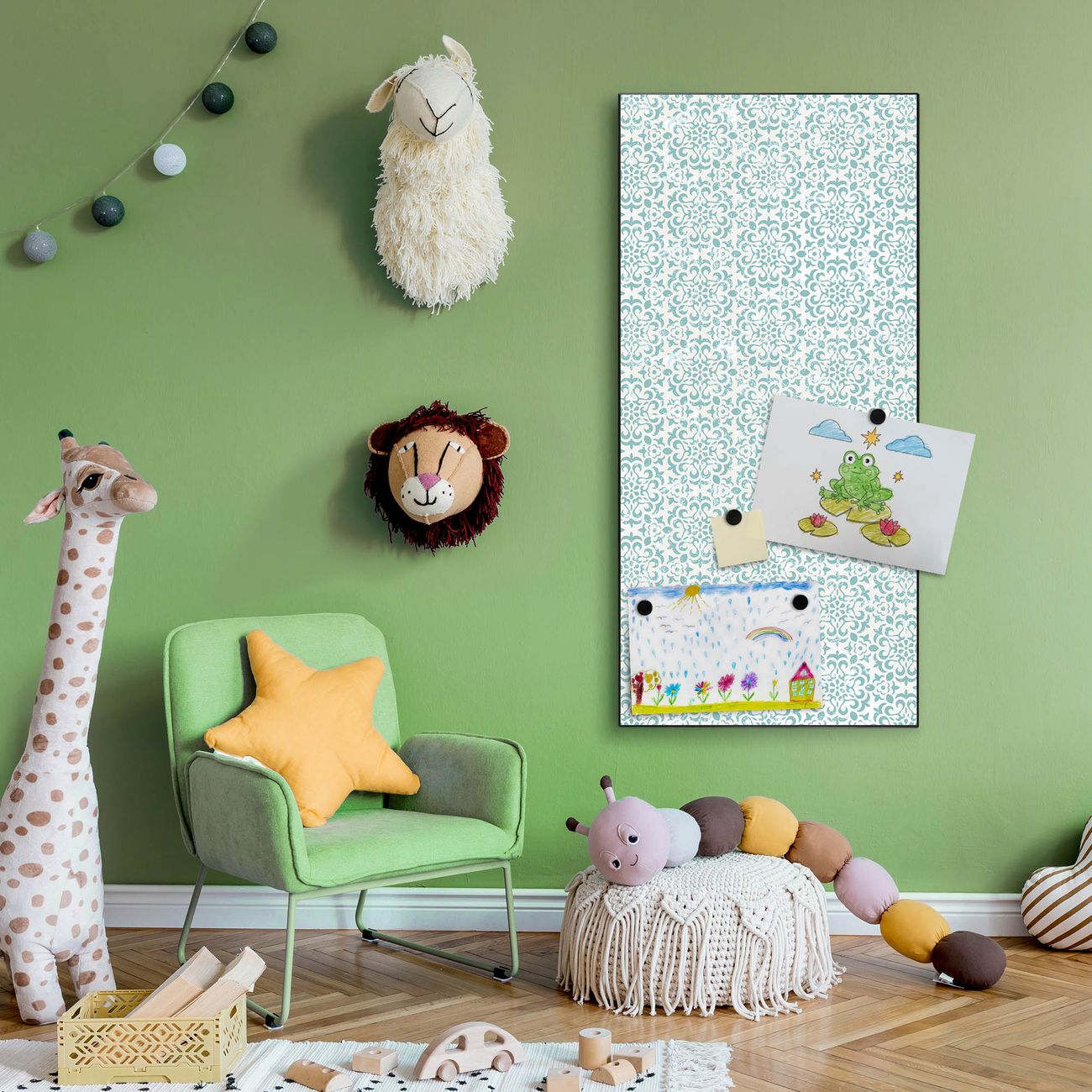 FUNKTION:  Die banjado Magnettafel mit Motiv Muster Getupft Blau Motiv bringt Ordnung in Ihr Zettelchaos. Fotos, Termine, Notizen oder Rezepte lassen Sich hier stilvoll mit Magneten ordnen, Sie behalten alles im Blick. An der Design Magnettafel halten alle handesüblichen Magnete. DESIGN:  Die magnetische Pinnwand mit dem Motiv Motiv Muster Getupft Blau ist ein eleganter Begleiter im Alltag. Mit dieser Memotafel aus Metall haben Sie auch ohne Notizen und Magnete ein schönes Dekoelement. Das Format bietet Ihnen ausreichend Platz um alle wichtigen Informationen im Blick zu behalten. DETAILS:  Die Magnettafel besteht aus silber-grau, weiß oder schwarzlackiertem Stahl. Sie hat eine Größe von 37 x 78 x 2cm. Es befinden sich auf der Rückseite vorgefertigte Aufhängungen die eine schnelle und unkomplizierte Anbringung ermöglichen. Das Motiv ist mit einem seidenmatten Laminat versehen und schützt so zusätzlich vor Kratzern. NUTZEN:  Sie können dieses Memoboard groß als Wandbild nutzen, es halten alle handelsüblichen Magneten daran. Die Pinnwand ist mit einem feuchten Lappen oder Schwamm abwischbar. Sie finden bei uns eine große Auswahl an passenden Magneten. BANJADO:  Wir sind ein kleines Team aus dem Herzen von Sachsen. Wir fertigen alle Artikel von Hand für Sie an, Sie erhalten keine preiswerte Importware. Auf Wunsch können Sie auch Ihr eigenes Foto auf die Magnettafel aufbringen, schreiben Sie uns an. Herzlichst, Ihr banjado-Team