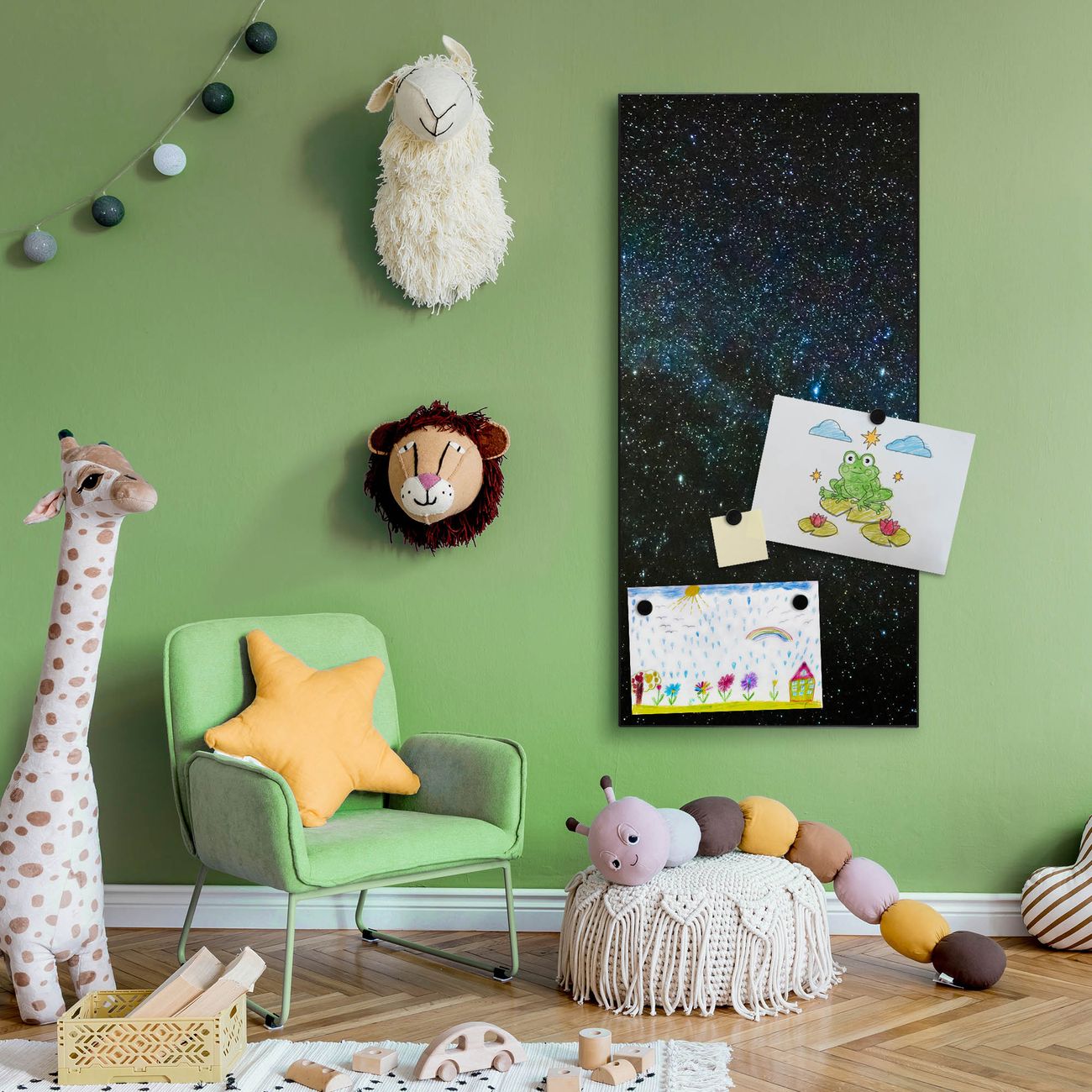 FUNKTION:  Die banjado Magnettafel mit Motiv Nachthimmel Motiv bringt Ordnung in Ihr Zettelchaos. Fotos, Termine, Notizen oder Rezepte lassen Sich hier stilvoll mit Magneten ordnen, Sie behalten alles im Blick. An der Design Magnettafel halten alle handesüblichen Magnete. DESIGN:  Die magnetische Pinnwand mit dem Motiv Motiv Nachthimmel ist ein eleganter Begleiter im Alltag. Mit dieser Memotafel aus Metall haben Sie auch ohne Notizen und Magnete ein schönes Dekoelement. Das Format bietet Ihnen ausreichend Platz um alle wichtigen Informationen im Blick zu behalten. DETAILS:  Die Magnettafel besteht aus silber-grau, weiß oder schwarzlackiertem Stahl. Sie hat eine Größe von 37 x 78 x 2cm. Es befinden sich auf der Rückseite vorgefertigte Aufhängungen die eine schnelle und unkomplizierte Anbringung ermöglichen. Das Motiv ist mit einem seidenmatten Laminat versehen und schützt so zusätzlich vor Kratzern. NUTZEN:  Sie können dieses Memoboard groß als Wandbild nutzen, es halten alle handelsüblichen Magneten daran. Die Pinnwand ist mit einem feuchten Lappen oder Schwamm abwischbar. Sie finden bei uns eine große Auswahl an passenden Magneten. BANJADO:  Wir sind ein kleines Team aus dem Herzen von Sachsen. Wir fertigen alle Artikel von Hand für Sie an, Sie erhalten keine preiswerte Importware. Auf Wunsch können Sie auch Ihr eigenes Foto auf die Magnettafel aufbringen, schreiben Sie uns an. Herzlichst, Ihr banjado-Team