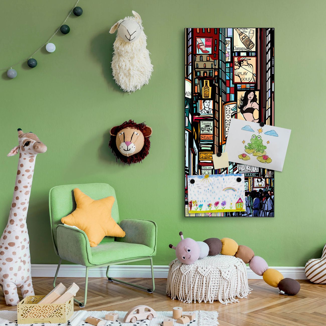 FUNKTION:  Die banjado Magnettafel mit Motiv New York Show Motiv bringt Ordnung in Ihr Zettelchaos. Fotos, Termine, Notizen oder Rezepte lassen Sich hier stilvoll mit Magneten ordnen, Sie behalten alles im Blick. An der Design Magnettafel halten alle handesüblichen Magnete. DESIGN:  Die magnetische Pinnwand mit dem Motiv Motiv New York Show ist ein eleganter Begleiter im Alltag. Mit dieser Memotafel aus Metall haben Sie auch ohne Notizen und Magnete ein schönes Dekoelement. Das Format bietet Ihnen ausreichend Platz um alle wichtigen Informationen im Blick zu behalten. DETAILS:  Die Magnettafel besteht aus silber-grau, weiß oder schwarzlackiertem Stahl. Sie hat eine Größe von 37 x 78 x 2cm. Es befinden sich auf der Rückseite vorgefertigte Aufhängungen die eine schnelle und unkomplizierte Anbringung ermöglichen. Das Motiv ist mit einem seidenmatten Laminat versehen und schützt so zusätzlich vor Kratzern. NUTZEN:  Sie können dieses Memoboard groß als Wandbild nutzen, es halten alle handelsüblichen Magneten daran. Die Pinnwand ist mit einem feuchten Lappen oder Schwamm abwischbar. Sie finden bei uns eine große Auswahl an passenden Magneten. BANJADO:  Wir sind ein kleines Team aus dem Herzen von Sachsen. Wir fertigen alle Artikel von Hand für Sie an, Sie erhalten keine preiswerte Importware. Auf Wunsch können Sie auch Ihr eigenes Foto auf die Magnettafel aufbringen, schreiben Sie uns an. Herzlichst, Ihr banjado-Team