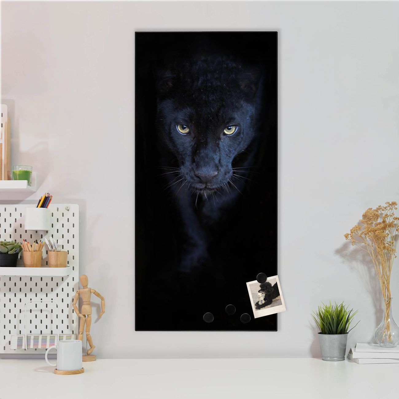 FUNKTION:  Die banjado Magnettafel mit Motiv Nora Motiv bringt Ordnung in Ihr Zettelchaos. Fotos, Termine, Notizen oder Rezepte lassen Sich hier stilvoll mit Magneten ordnen, Sie behalten alles im Blick. An der Design Magnettafel halten alle handesüblichen Magnete. DESIGN:  Die magnetische Pinnwand mit dem Motiv Motiv Nora ist ein eleganter Begleiter im Alltag. Mit dieser Memotafel aus Metall haben Sie auch ohne Notizen und Magnete ein schönes Dekoelement. Das Format bietet Ihnen ausreichend Platz um alle wichtigen Informationen im Blick zu behalten. DETAILS:  Die Magnettafel besteht aus silber-grau, weiß oder schwarzlackiertem Stahl. Sie hat eine Größe von 37 x 78 x 2cm. Es befinden sich auf der Rückseite vorgefertigte Aufhängungen die eine schnelle und unkomplizierte Anbringung ermöglichen. Das Motiv ist mit einem seidenmatten Laminat versehen und schützt so zusätzlich vor Kratzern. NUTZEN:  Sie können dieses Memoboard groß als Wandbild nutzen, es halten alle handelsüblichen Magneten daran. Die Pinnwand ist mit einem feuchten Lappen oder Schwamm abwischbar. Sie finden bei uns eine große Auswahl an passenden Magneten. BANJADO:  Wir sind ein kleines Team aus dem Herzen von Sachsen. Wir fertigen alle Artikel von Hand für Sie an, Sie erhalten keine preiswerte Importware. Auf Wunsch können Sie auch Ihr eigenes Foto auf die Magnettafel aufbringen, schreiben Sie uns an. Herzlichst, Ihr banjado-Team