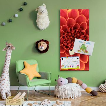 FUNKTION:  Die banjado Magnettafel mit Motiv Orange Chrysantheme Motiv bringt Ordnung in Ihr Zettelchaos. Fotos, Termine, Notizen oder Rezepte lassen Sich hier stilvoll mit Magneten ordnen, Sie behalten alles im Blick. An der Design Magnettafel halten alle handesüblichen Magnete. DESIGN:  Die magnetische Pinnwand mit dem Motiv Motiv Orange Chrysantheme ist ein eleganter Begleiter im Alltag. Mit dieser Memotafel aus Metall haben Sie auch ohne Notizen und Magnete ein schönes Dekoelement. Das Format bietet Ihnen ausreichend Platz um alle wichtigen Informationen im Blick zu behalten. DETAILS:  Die Magnettafel besteht aus silber-grau, weiß oder schwarzlackiertem Stahl. Sie hat eine Größe von 37 x 78 x 2cm. Es befinden sich auf der Rückseite vorgefertigte Aufhängungen die eine schnelle und unkomplizierte Anbringung ermöglichen. Das Motiv ist mit einem seidenmatten Laminat versehen und schützt so zusätzlich vor Kratzern. NUTZEN:  Sie können dieses Memoboard groß als Wandbild nutzen, es halten alle handelsüblichen Magneten daran. Die Pinnwand ist mit einem feuchten Lappen oder Schwamm abwischbar. Sie finden bei uns eine große Auswahl an passenden Magneten. BANJADO:  Wir sind ein kleines Team aus dem Herzen von Sachsen. Wir fertigen alle Artikel von Hand für Sie an, Sie erhalten keine preiswerte Importware. Auf Wunsch können Sie auch Ihr eigenes Foto auf die Magnettafel aufbringen, schreiben Sie uns an. Herzlichst, Ihr banjado-Team