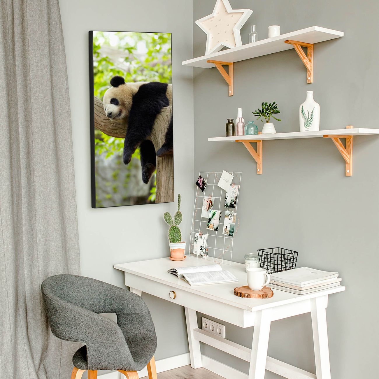 FUNKTION:  Die banjado Magnettafel mit Motiv Panda Motiv bringt Ordnung in Ihr Zettelchaos. Fotos, Termine, Notizen oder Rezepte lassen Sich hier stilvoll mit Magneten ordnen, Sie behalten alles im Blick. An der Design Magnettafel halten alle handesüblichen Magnete. DESIGN:  Die magnetische Pinnwand mit dem Motiv Motiv Panda ist ein eleganter Begleiter im Alltag. Mit dieser Memotafel aus Metall haben Sie auch ohne Notizen und Magnete ein schönes Dekoelement. Das Format bietet Ihnen ausreichend Platz um alle wichtigen Informationen im Blick zu behalten. DETAILS:  Die Magnettafel besteht aus silber-grau, weiß oder schwarzlackiertem Stahl. Sie hat eine Größe von 37 x 78 x 2cm. Es befinden sich auf der Rückseite vorgefertigte Aufhängungen die eine schnelle und unkomplizierte Anbringung ermöglichen. Das Motiv ist mit einem seidenmatten Laminat versehen und schützt so zusätzlich vor Kratzern. NUTZEN:  Sie können dieses Memoboard groß als Wandbild nutzen, es halten alle handelsüblichen Magneten daran. Die Pinnwand ist mit einem feuchten Lappen oder Schwamm abwischbar. Sie finden bei uns eine große Auswahl an passenden Magneten. BANJADO:  Wir sind ein kleines Team aus dem Herzen von Sachsen. Wir fertigen alle Artikel von Hand für Sie an, Sie erhalten keine preiswerte Importware. Auf Wunsch können Sie auch Ihr eigenes Foto auf die Magnettafel aufbringen, schreiben Sie uns an. Herzlichst, Ihr banjado-Team