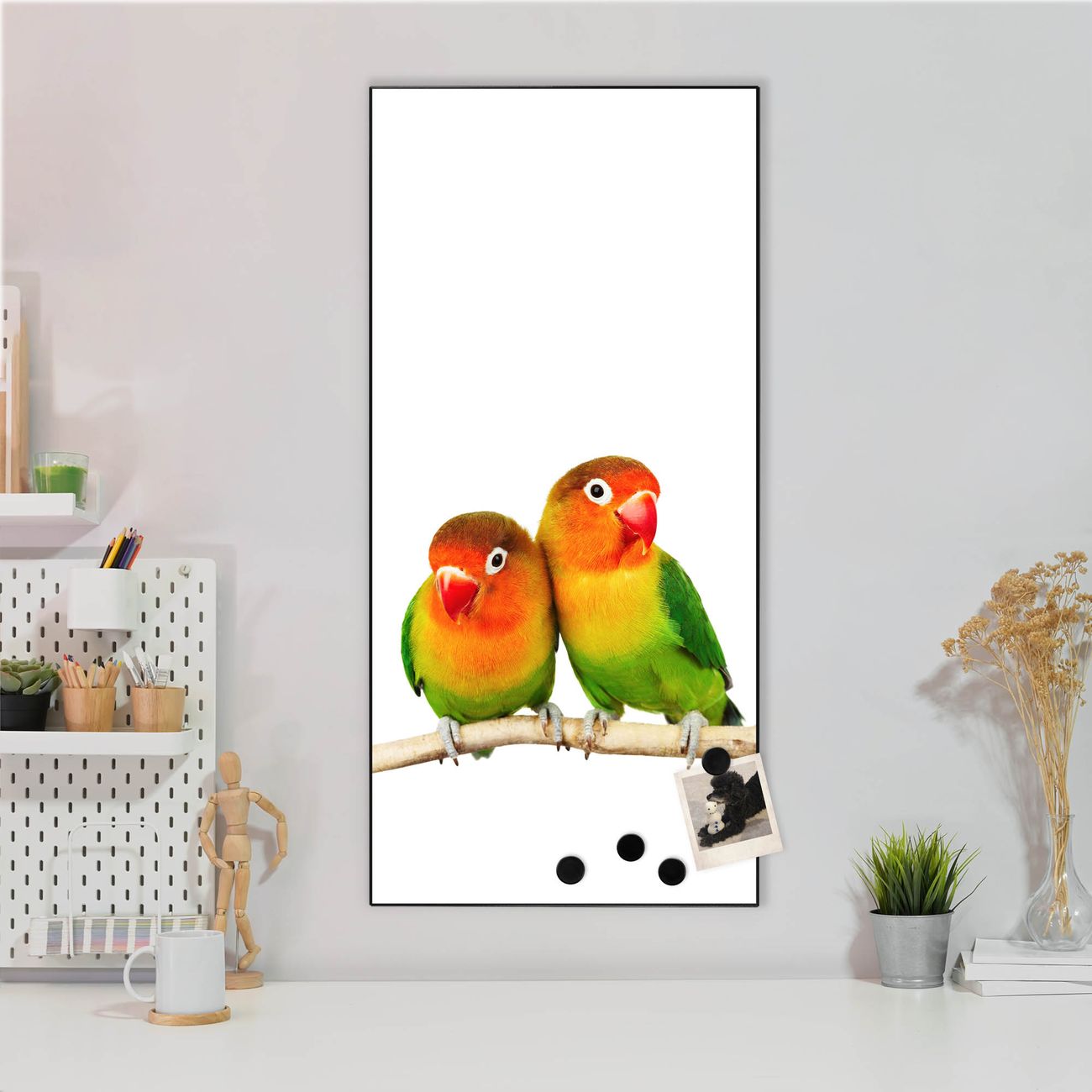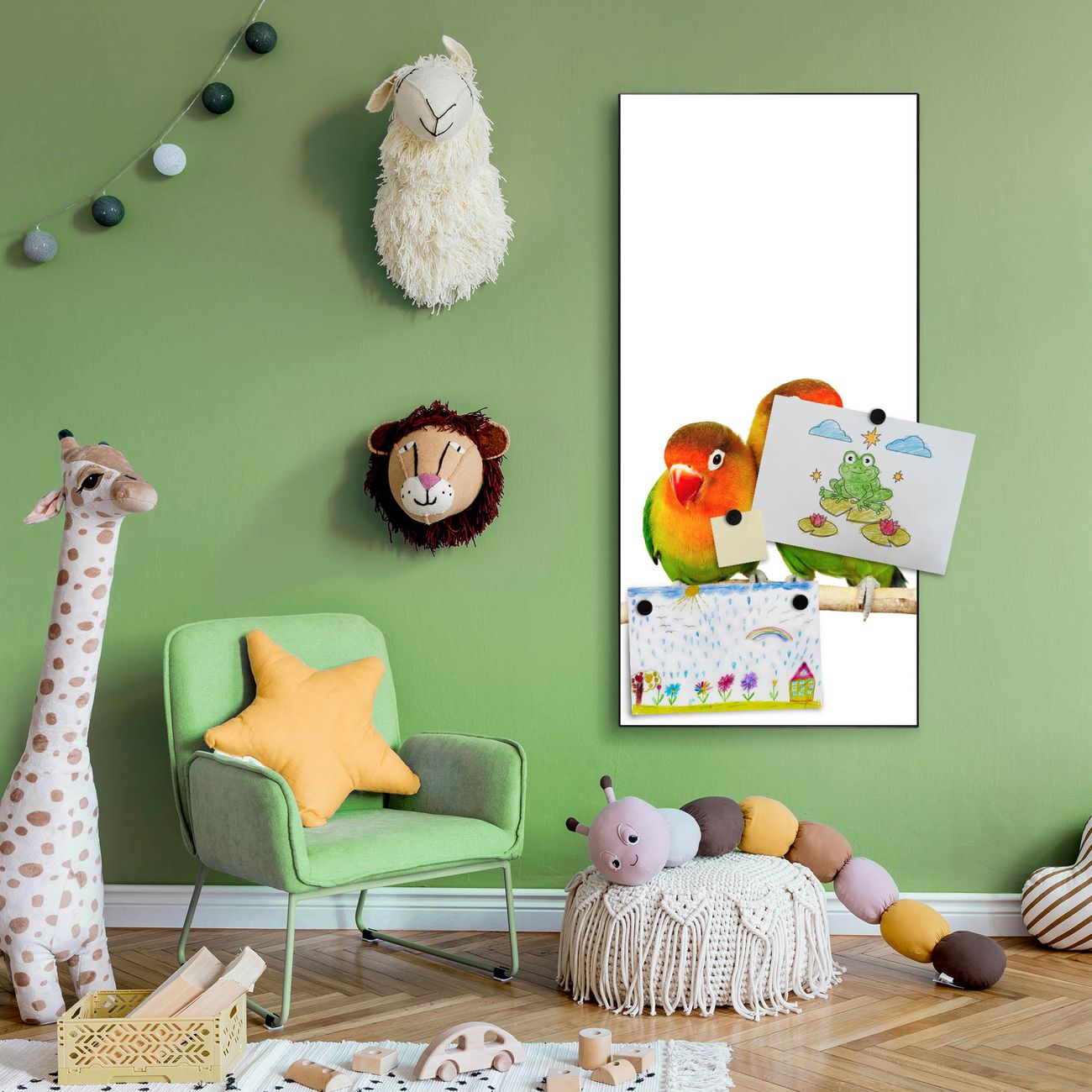 Stahl Magnettafel Hochformat 78x37cm Papageien