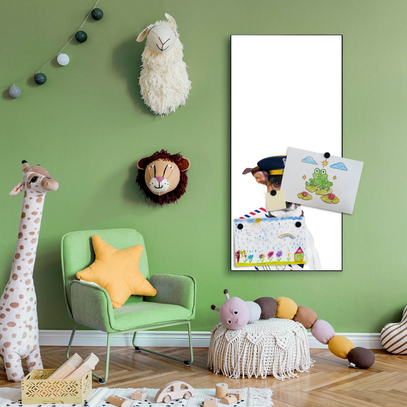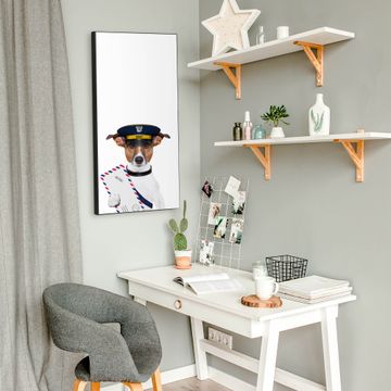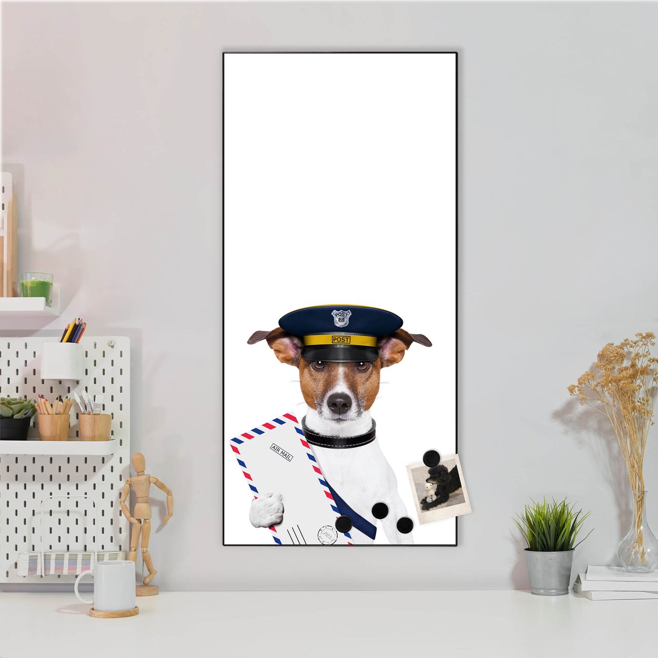 FUNKTION:  Die banjado Magnettafel mit Motiv Postbote Jack Russel Motiv bringt Ordnung in Ihr Zettelchaos. Fotos, Termine, Notizen oder Rezepte lassen Sich hier stilvoll mit Magneten ordnen, Sie behalten alles im Blick. An der Design Magnettafel halten alle handesüblichen Magnete. DESIGN:  Die magnetische Pinnwand mit dem Motiv Motiv Postbote Jack Russel ist ein eleganter Begleiter im Alltag. Mit dieser Memotafel aus Metall haben Sie auch ohne Notizen und Magnete ein schönes Dekoelement. Das Format bietet Ihnen ausreichend Platz um alle wichtigen Informationen im Blick zu behalten. DETAILS:  Die Magnettafel besteht aus silber-grau, weiß oder schwarzlackiertem Stahl. Sie hat eine Größe von 37 x 78 x 2cm. Es befinden sich auf der Rückseite vorgefertigte Aufhängungen die eine schnelle und unkomplizierte Anbringung ermöglichen. Das Motiv ist mit einem seidenmatten Laminat versehen und schützt so zusätzlich vor Kratzern. NUTZEN:  Sie können dieses Memoboard groß als Wandbild nutzen, es halten alle handelsüblichen Magneten daran. Die Pinnwand ist mit einem feuchten Lappen oder Schwamm abwischbar. Sie finden bei uns eine große Auswahl an passenden Magneten. BANJADO:  Wir sind ein kleines Team aus dem Herzen von Sachsen. Wir fertigen alle Artikel von Hand für Sie an, Sie erhalten keine preiswerte Importware. Auf Wunsch können Sie auch Ihr eigenes Foto auf die Magnettafel aufbringen, schreiben Sie uns an. Herzlichst, Ihr banjado-Team