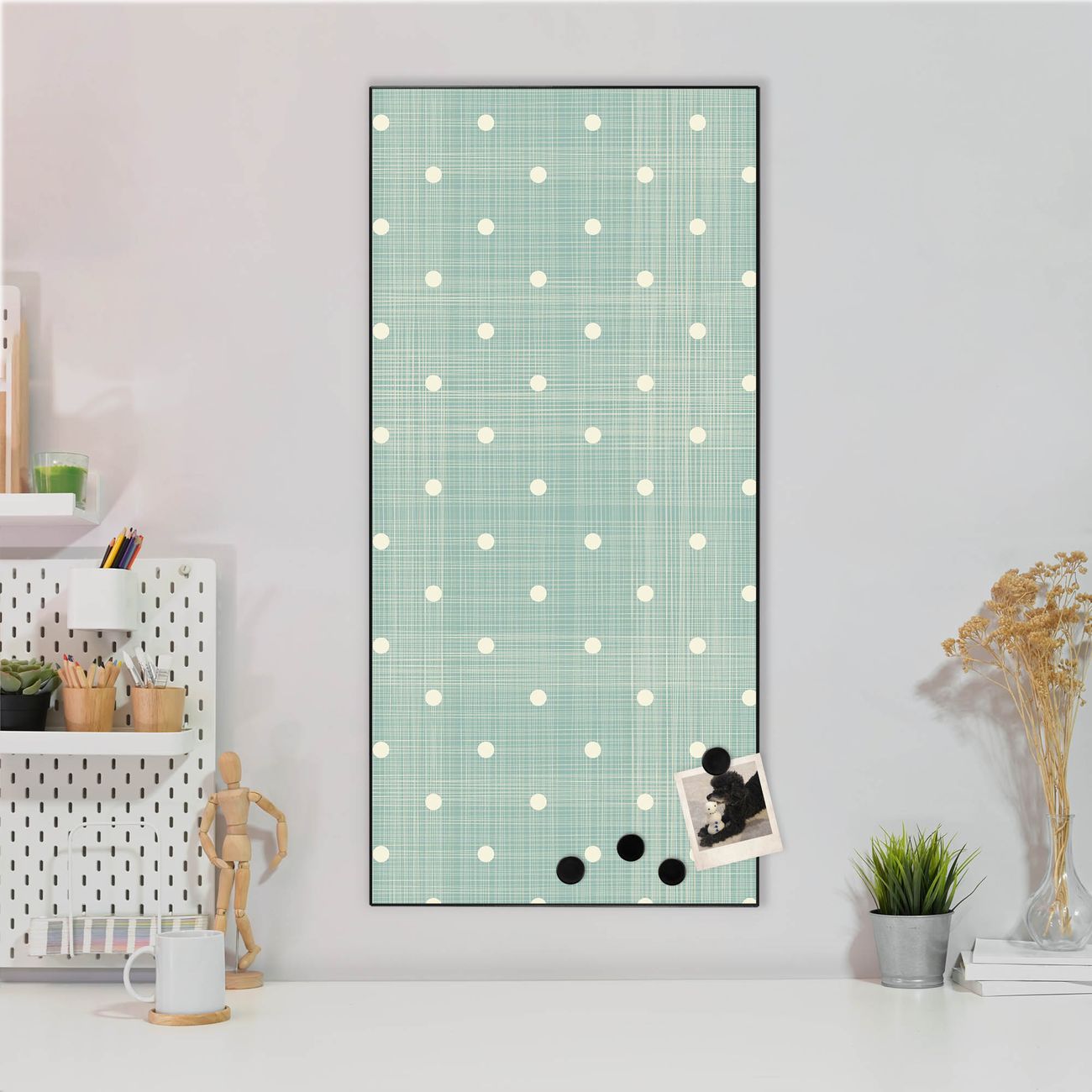 Stahl Magnettafel Hochformat 78x37cm Punkte Lindgrün