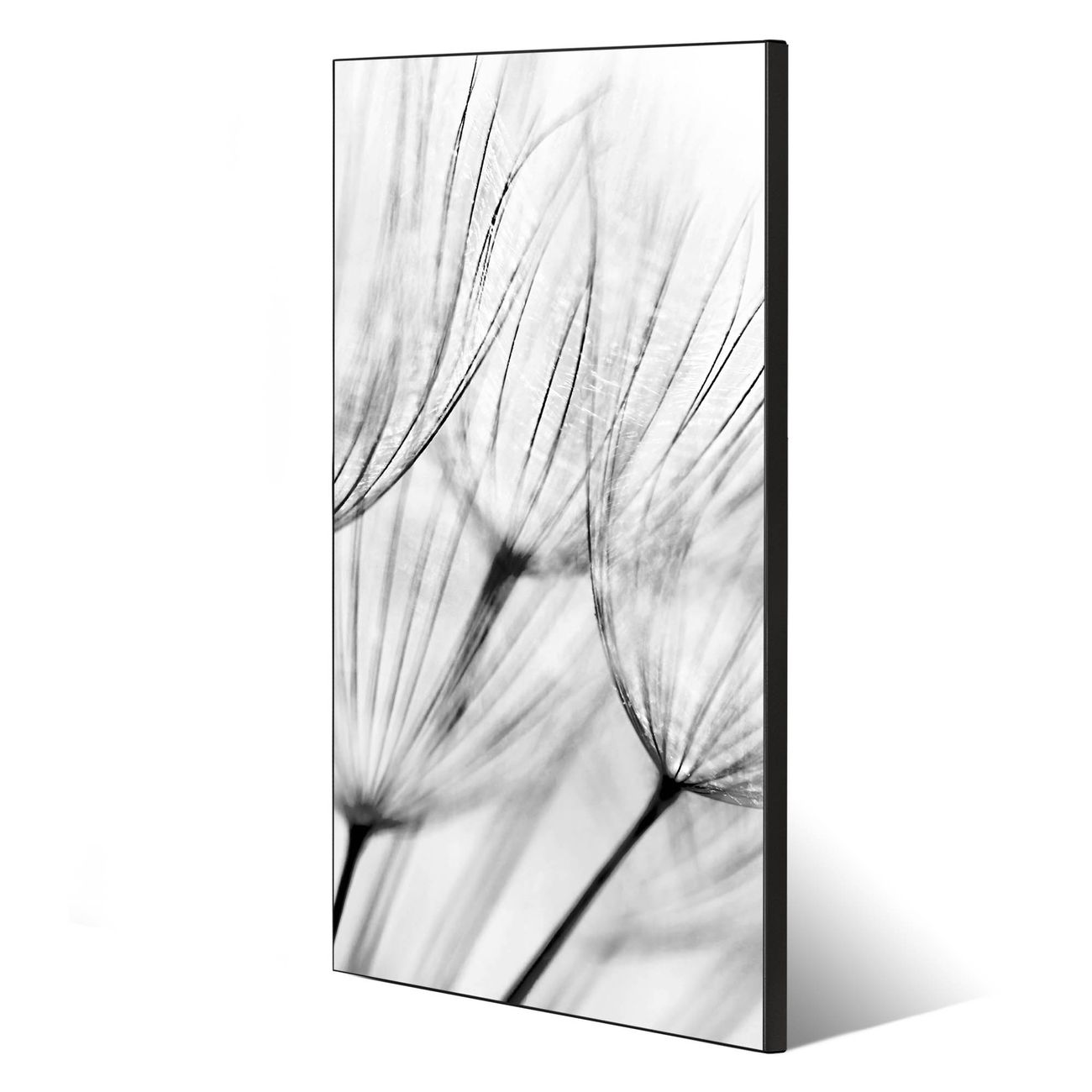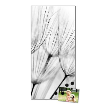 FUNKTION:  Die banjado Magnettafel mit Motiv Pusteblumen SW Motiv bringt Ordnung in Ihr Zettelchaos. Fotos, Termine, Notizen oder Rezepte lassen Sich hier stilvoll mit Magneten ordnen, Sie behalten alles im Blick. An der Design Magnettafel halten alle handesüblichen Magnete. DESIGN:  Die magnetische Pinnwand mit dem Motiv Motiv Pusteblumen SW ist ein eleganter Begleiter im Alltag. Mit dieser Memotafel aus Metall haben Sie auch ohne Notizen und Magnete ein schönes Dekoelement. Das Format bietet Ihnen ausreichend Platz um alle wichtigen Informationen im Blick zu behalten. DETAILS:  Die Magnettafel besteht aus silber-grau, weiß oder schwarzlackiertem Stahl. Sie hat eine Größe von 37 x 78 x 2cm. Es befinden sich auf der Rückseite vorgefertigte Aufhängungen die eine schnelle und unkomplizierte Anbringung ermöglichen. Das Motiv ist mit einem seidenmatten Laminat versehen und schützt so zusätzlich vor Kratzern. NUTZEN:  Sie können dieses Memoboard groß als Wandbild nutzen, es halten alle handelsüblichen Magneten daran. Die Pinnwand ist mit einem feuchten Lappen oder Schwamm abwischbar. Sie finden bei uns eine große Auswahl an passenden Magneten. BANJADO:  Wir sind ein kleines Team aus dem Herzen von Sachsen. Wir fertigen alle Artikel von Hand für Sie an, Sie erhalten keine preiswerte Importware. Auf Wunsch können Sie auch Ihr eigenes Foto auf die Magnettafel aufbringen, schreiben Sie uns an. Herzlichst, Ihr banjado-Team