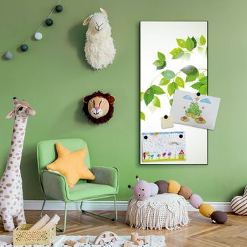 FUNKTION:  Die banjado Magnettafel mit Motiv Ranke Gelb Weiß Motiv bringt Ordnung in Ihr Zettelchaos. Fotos, Termine, Notizen oder Rezepte lassen Sich hier stilvoll mit Magneten ordnen, Sie behalten alles im Blick. An der Design Magnettafel halten alle handesüblichen Magnete. DESIGN:  Die magnetische Pinnwand mit dem Motiv Motiv Ranke Gelb Weiß ist ein eleganter Begleiter im Alltag. Mit dieser Memotafel aus Metall haben Sie auch ohne Notizen und Magnete ein schönes Dekoelement. Das Format bietet Ihnen ausreichend Platz um alle wichtigen Informationen im Blick zu behalten. DETAILS:  Die Magnettafel besteht aus silber-grau, weiß oder schwarzlackiertem Stahl. Sie hat eine Größe von 37 x 78 x 2cm. Es befinden sich auf der Rückseite vorgefertigte Aufhängungen die eine schnelle und unkomplizierte Anbringung ermöglichen. Das Motiv ist mit einem seidenmatten Laminat versehen und schützt so zusätzlich vor Kratzern. NUTZEN:  Sie können dieses Memoboard groß als Wandbild nutzen, es halten alle handelsüblichen Magneten daran. Die Pinnwand ist mit einem feuchten Lappen oder Schwamm abwischbar. Sie finden bei uns eine große Auswahl an passenden Magneten. BANJADO:  Wir sind ein kleines Team aus dem Herzen von Sachsen. Wir fertigen alle Artikel von Hand für Sie an, Sie erhalten keine preiswerte Importware. Auf Wunsch können Sie auch Ihr eigenes Foto auf die Magnettafel aufbringen, schreiben Sie uns an. Herzlichst, Ihr banjado-Team