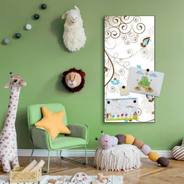 FUNKTION:  Die banjado Magnettafel mit Motiv Rankenrahmen Motiv bringt Ordnung in Ihr Zettelchaos. Fotos, Termine, Notizen oder Rezepte lassen Sich hier stilvoll mit Magneten ordnen, Sie behalten alles im Blick. An der Design Magnettafel halten alle handesüblichen Magnete. DESIGN:  Die magnetische Pinnwand mit dem Motiv Motiv Rankenrahmen ist ein eleganter Begleiter im Alltag. Mit dieser Memotafel aus Metall haben Sie auch ohne Notizen und Magnete ein schönes Dekoelement. Das Format bietet Ihnen ausreichend Platz um alle wichtigen Informationen im Blick zu behalten. DETAILS:  Die Magnettafel besteht aus silber-grau, weiß oder schwarzlackiertem Stahl. Sie hat eine Größe von 37 x 78 x 2cm. Es befinden sich auf der Rückseite vorgefertigte Aufhängungen die eine schnelle und unkomplizierte Anbringung ermöglichen. Das Motiv ist mit einem seidenmatten Laminat versehen und schützt so zusätzlich vor Kratzern. NUTZEN:  Sie können dieses Memoboard groß als Wandbild nutzen, es halten alle handelsüblichen Magneten daran. Die Pinnwand ist mit einem feuchten Lappen oder Schwamm abwischbar. Sie finden bei uns eine große Auswahl an passenden Magneten. BANJADO:  Wir sind ein kleines Team aus dem Herzen von Sachsen. Wir fertigen alle Artikel von Hand für Sie an, Sie erhalten keine preiswerte Importware. Auf Wunsch können Sie auch Ihr eigenes Foto auf die Magnettafel aufbringen, schreiben Sie uns an. Herzlichst, Ihr banjado-Team