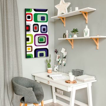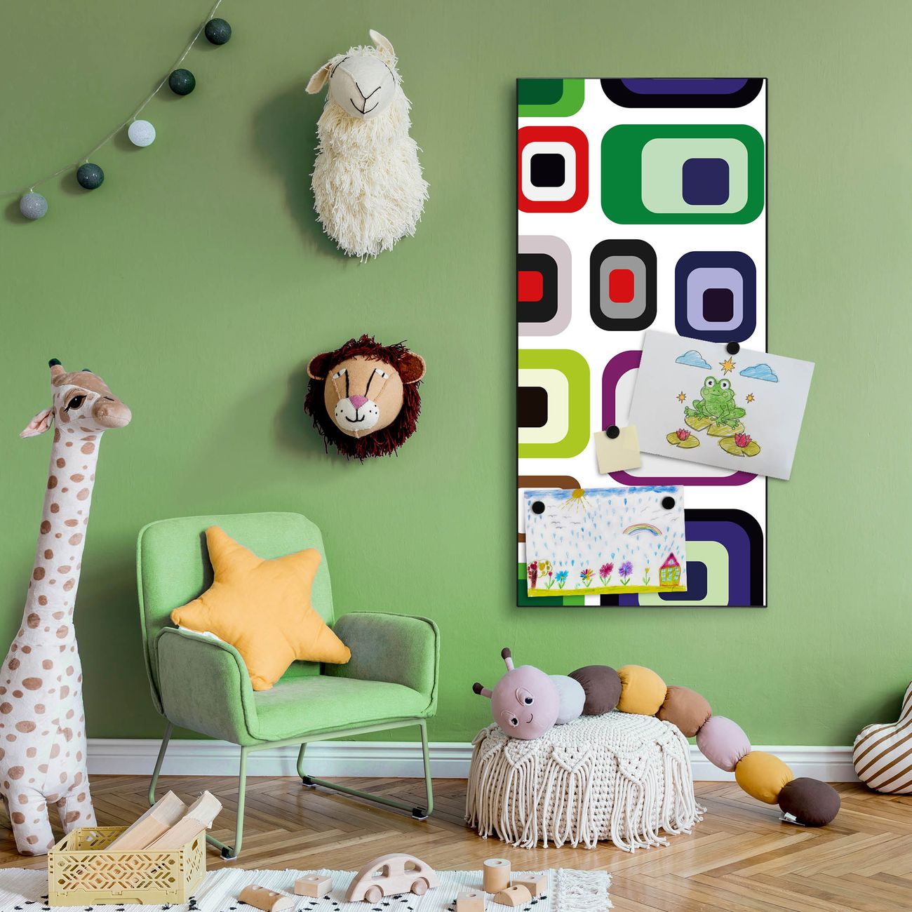 FUNKTION:  Die banjado Magnettafel mit Motiv Retro 2 Motiv bringt Ordnung in Ihr Zettelchaos. Fotos, Termine, Notizen oder Rezepte lassen Sich hier stilvoll mit Magneten ordnen, Sie behalten alles im Blick. An der Design Magnettafel halten alle handesüblichen Magnete. DESIGN:  Die magnetische Pinnwand mit dem Motiv Motiv Retro 2 ist ein eleganter Begleiter im Alltag. Mit dieser Memotafel aus Metall haben Sie auch ohne Notizen und Magnete ein schönes Dekoelement. Das Format bietet Ihnen ausreichend Platz um alle wichtigen Informationen im Blick zu behalten. DETAILS:  Die Magnettafel besteht aus silber-grau, weiß oder schwarzlackiertem Stahl. Sie hat eine Größe von 37 x 78 x 2cm. Es befinden sich auf der Rückseite vorgefertigte Aufhängungen die eine schnelle und unkomplizierte Anbringung ermöglichen. Das Motiv ist mit einem seidenmatten Laminat versehen und schützt so zusätzlich vor Kratzern. NUTZEN:  Sie können dieses Memoboard groß als Wandbild nutzen, es halten alle handelsüblichen Magneten daran. Die Pinnwand ist mit einem feuchten Lappen oder Schwamm abwischbar. Sie finden bei uns eine große Auswahl an passenden Magneten. BANJADO:  Wir sind ein kleines Team aus dem Herzen von Sachsen. Wir fertigen alle Artikel von Hand für Sie an, Sie erhalten keine preiswerte Importware. Auf Wunsch können Sie auch Ihr eigenes Foto auf die Magnettafel aufbringen, schreiben Sie uns an. Herzlichst, Ihr banjado-Team