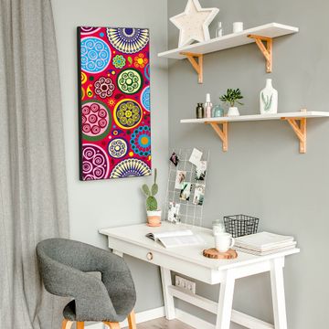 FUNKTION:  Die banjado Magnettafel mit Motiv Retro Kreise Motiv bringt Ordnung in Ihr Zettelchaos. Fotos, Termine, Notizen oder Rezepte lassen Sich hier stilvoll mit Magneten ordnen, Sie behalten alles im Blick. An der Design Magnettafel halten alle handesüblichen Magnete. DESIGN:  Die magnetische Pinnwand mit dem Motiv Motiv Retro Kreise ist ein eleganter Begleiter im Alltag. Mit dieser Memotafel aus Metall haben Sie auch ohne Notizen und Magnete ein schönes Dekoelement. Das Format bietet Ihnen ausreichend Platz um alle wichtigen Informationen im Blick zu behalten. DETAILS:  Die Magnettafel besteht aus silber-grau, weiß oder schwarzlackiertem Stahl. Sie hat eine Größe von 37 x 78 x 2cm. Es befinden sich auf der Rückseite vorgefertigte Aufhängungen die eine schnelle und unkomplizierte Anbringung ermöglichen. Das Motiv ist mit einem seidenmatten Laminat versehen und schützt so zusätzlich vor Kratzern. NUTZEN:  Sie können dieses Memoboard groß als Wandbild nutzen, es halten alle handelsüblichen Magneten daran. Die Pinnwand ist mit einem feuchten Lappen oder Schwamm abwischbar. Sie finden bei uns eine große Auswahl an passenden Magneten. BANJADO:  Wir sind ein kleines Team aus dem Herzen von Sachsen. Wir fertigen alle Artikel von Hand für Sie an, Sie erhalten keine preiswerte Importware. Auf Wunsch können Sie auch Ihr eigenes Foto auf die Magnettafel aufbringen, schreiben Sie uns an. Herzlichst, Ihr banjado-Team