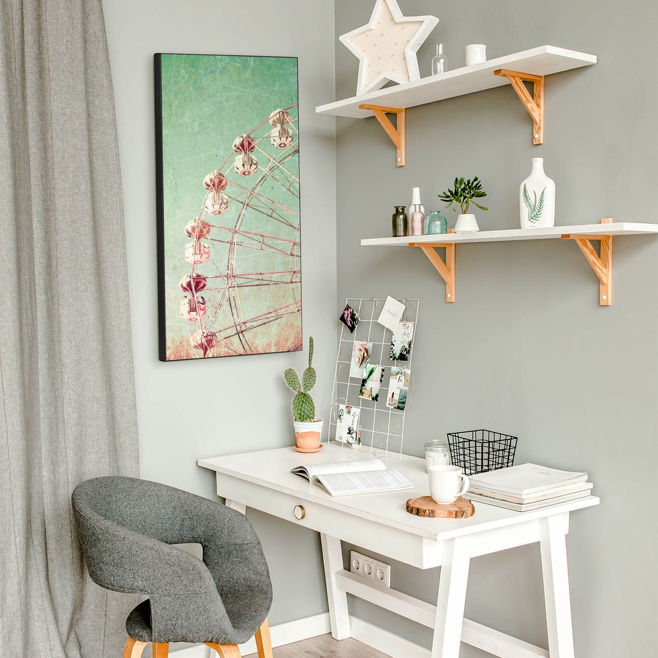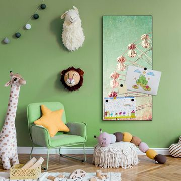FUNKTION:  Die banjado Magnettafel mit Motiv Riesenrad 1 Motiv bringt Ordnung in Ihr Zettelchaos. Fotos, Termine, Notizen oder Rezepte lassen Sich hier stilvoll mit Magneten ordnen, Sie behalten alles im Blick. An der Design Magnettafel halten alle handesüblichen Magnete. DESIGN:  Die magnetische Pinnwand mit dem Motiv Motiv Riesenrad 1 ist ein eleganter Begleiter im Alltag. Mit dieser Memotafel aus Metall haben Sie auch ohne Notizen und Magnete ein schönes Dekoelement. Das Format bietet Ihnen ausreichend Platz um alle wichtigen Informationen im Blick zu behalten. DETAILS:  Die Magnettafel besteht aus silber-grau, weiß oder schwarzlackiertem Stahl. Sie hat eine Größe von 37 x 78 x 2cm. Es befinden sich auf der Rückseite vorgefertigte Aufhängungen die eine schnelle und unkomplizierte Anbringung ermöglichen. Das Motiv ist mit einem seidenmatten Laminat versehen und schützt so zusätzlich vor Kratzern. NUTZEN:  Sie können dieses Memoboard groß als Wandbild nutzen, es halten alle handelsüblichen Magneten daran. Die Pinnwand ist mit einem feuchten Lappen oder Schwamm abwischbar. Sie finden bei uns eine große Auswahl an passenden Magneten. BANJADO:  Wir sind ein kleines Team aus dem Herzen von Sachsen. Wir fertigen alle Artikel von Hand für Sie an, Sie erhalten keine preiswerte Importware. Auf Wunsch können Sie auch Ihr eigenes Foto auf die Magnettafel aufbringen, schreiben Sie uns an. Herzlichst, Ihr banjado-Team