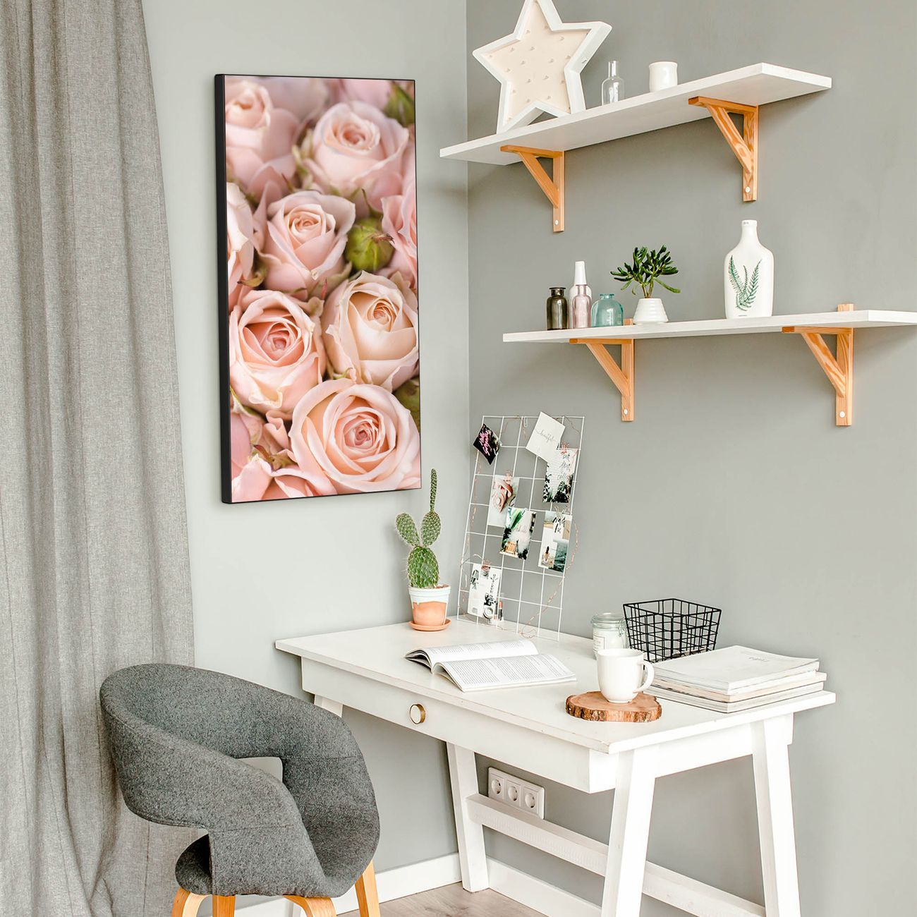 FUNKTION:  Die banjado Magnettafel mit Motiv Rosenbouquet Motiv bringt Ordnung in Ihr Zettelchaos. Fotos, Termine, Notizen oder Rezepte lassen Sich hier stilvoll mit Magneten ordnen, Sie behalten alles im Blick. An der Design Magnettafel halten alle handesüblichen Magnete. DESIGN:  Die magnetische Pinnwand mit dem Motiv Motiv Rosenbouquet ist ein eleganter Begleiter im Alltag. Mit dieser Memotafel aus Metall haben Sie auch ohne Notizen und Magnete ein schönes Dekoelement. Das Format bietet Ihnen ausreichend Platz um alle wichtigen Informationen im Blick zu behalten. DETAILS:  Die Magnettafel besteht aus silber-grau, weiß oder schwarzlackiertem Stahl. Sie hat eine Größe von 37 x 78 x 2cm. Es befinden sich auf der Rückseite vorgefertigte Aufhängungen die eine schnelle und unkomplizierte Anbringung ermöglichen. Das Motiv ist mit einem seidenmatten Laminat versehen und schützt so zusätzlich vor Kratzern. NUTZEN:  Sie können dieses Memoboard groß als Wandbild nutzen, es halten alle handelsüblichen Magneten daran. Die Pinnwand ist mit einem feuchten Lappen oder Schwamm abwischbar. Sie finden bei uns eine große Auswahl an passenden Magneten. BANJADO:  Wir sind ein kleines Team aus dem Herzen von Sachsen. Wir fertigen alle Artikel von Hand für Sie an, Sie erhalten keine preiswerte Importware. Auf Wunsch können Sie auch Ihr eigenes Foto auf die Magnettafel aufbringen, schreiben Sie uns an. Herzlichst, Ihr banjado-Team
