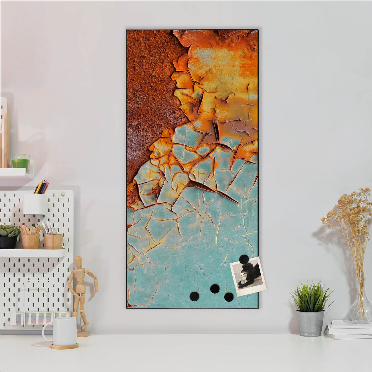 Stahl Magnettafel Hochformat 78x37cm Rost und Blau
