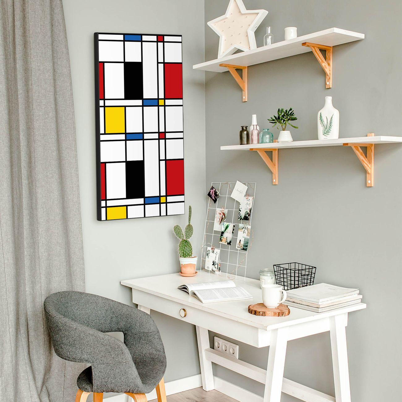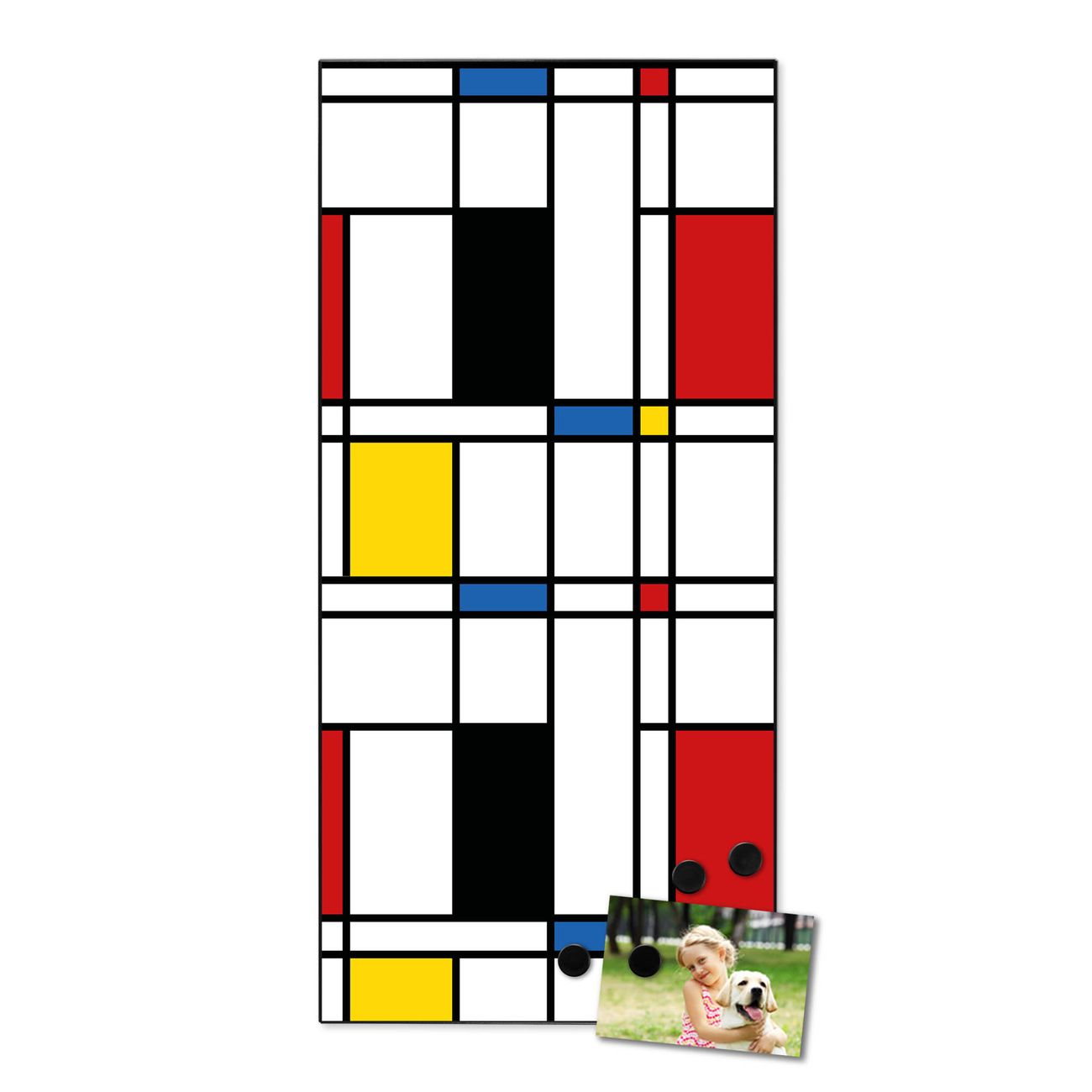 FUNKTION:  Die banjado Magnettafel mit Motiv Rot Gelb Blau Motiv bringt Ordnung in Ihr Zettelchaos. Fotos, Termine, Notizen oder Rezepte lassen Sich hier stilvoll mit Magneten ordnen, Sie behalten alles im Blick. An der Design Magnettafel halten alle handesüblichen Magnete. DESIGN:  Die magnetische Pinnwand mit dem Motiv Motiv Rot Gelb Blau ist ein eleganter Begleiter im Alltag. Mit dieser Memotafel aus Metall haben Sie auch ohne Notizen und Magnete ein schönes Dekoelement. Das Format bietet Ihnen ausreichend Platz um alle wichtigen Informationen im Blick zu behalten. DETAILS:  Die Magnettafel besteht aus silber-grau, weiß oder schwarzlackiertem Stahl. Sie hat eine Größe von 37 x 78 x 2cm. Es befinden sich auf der Rückseite vorgefertigte Aufhängungen die eine schnelle und unkomplizierte Anbringung ermöglichen. Das Motiv ist mit einem seidenmatten Laminat versehen und schützt so zusätzlich vor Kratzern. NUTZEN:  Sie können dieses Memoboard groß als Wandbild nutzen, es halten alle handelsüblichen Magneten daran. Die Pinnwand ist mit einem feuchten Lappen oder Schwamm abwischbar. Sie finden bei uns eine große Auswahl an passenden Magneten. BANJADO:  Wir sind ein kleines Team aus dem Herzen von Sachsen. Wir fertigen alle Artikel von Hand für Sie an, Sie erhalten keine preiswerte Importware. Auf Wunsch können Sie auch Ihr eigenes Foto auf die Magnettafel aufbringen, schreiben Sie uns an. Herzlichst, Ihr banjado-Team