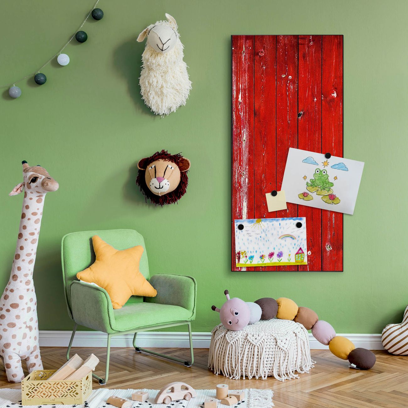 Stahl Magnettafel Hochformat 78x37cm Rote Holzlatten