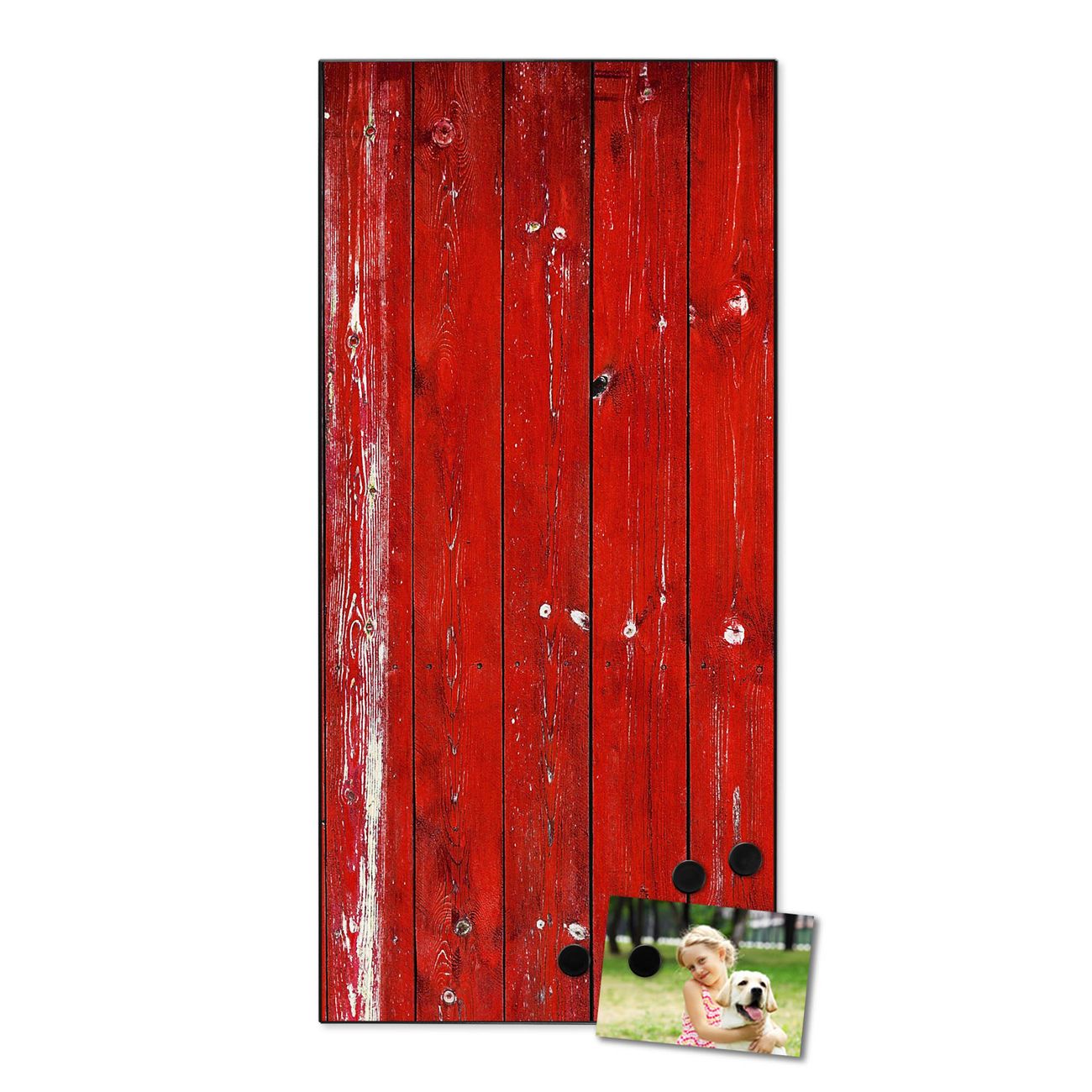 FUNKTION:  Die banjado Magnettafel mit Motiv Rote Holzlatten Motiv bringt Ordnung in Ihr Zettelchaos. Fotos, Termine, Notizen oder Rezepte lassen Sich hier stilvoll mit Magneten ordnen, Sie behalten alles im Blick. An der Design Magnettafel halten alle handesüblichen Magnete. DESIGN:  Die magnetische Pinnwand mit dem Motiv Motiv Rote Holzlatten ist ein eleganter Begleiter im Alltag. Mit dieser Memotafel aus Metall haben Sie auch ohne Notizen und Magnete ein schönes Dekoelement. Das Format bietet Ihnen ausreichend Platz um alle wichtigen Informationen im Blick zu behalten. DETAILS:  Die Magnettafel besteht aus silber-grau, weiß oder schwarzlackiertem Stahl. Sie hat eine Größe von 37 x 78 x 2cm. Es befinden sich auf der Rückseite vorgefertigte Aufhängungen die eine schnelle und unkomplizierte Anbringung ermöglichen. Das Motiv ist mit einem seidenmatten Laminat versehen und schützt so zusätzlich vor Kratzern. NUTZEN:  Sie können dieses Memoboard groß als Wandbild nutzen, es halten alle handelsüblichen Magneten daran. Die Pinnwand ist mit einem feuchten Lappen oder Schwamm abwischbar. Sie finden bei uns eine große Auswahl an passenden Magneten. BANJADO:  Wir sind ein kleines Team aus dem Herzen von Sachsen. Wir fertigen alle Artikel von Hand für Sie an, Sie erhalten keine preiswerte Importware. Auf Wunsch können Sie auch Ihr eigenes Foto auf die Magnettafel aufbringen, schreiben Sie uns an. Herzlichst, Ihr banjado-Team