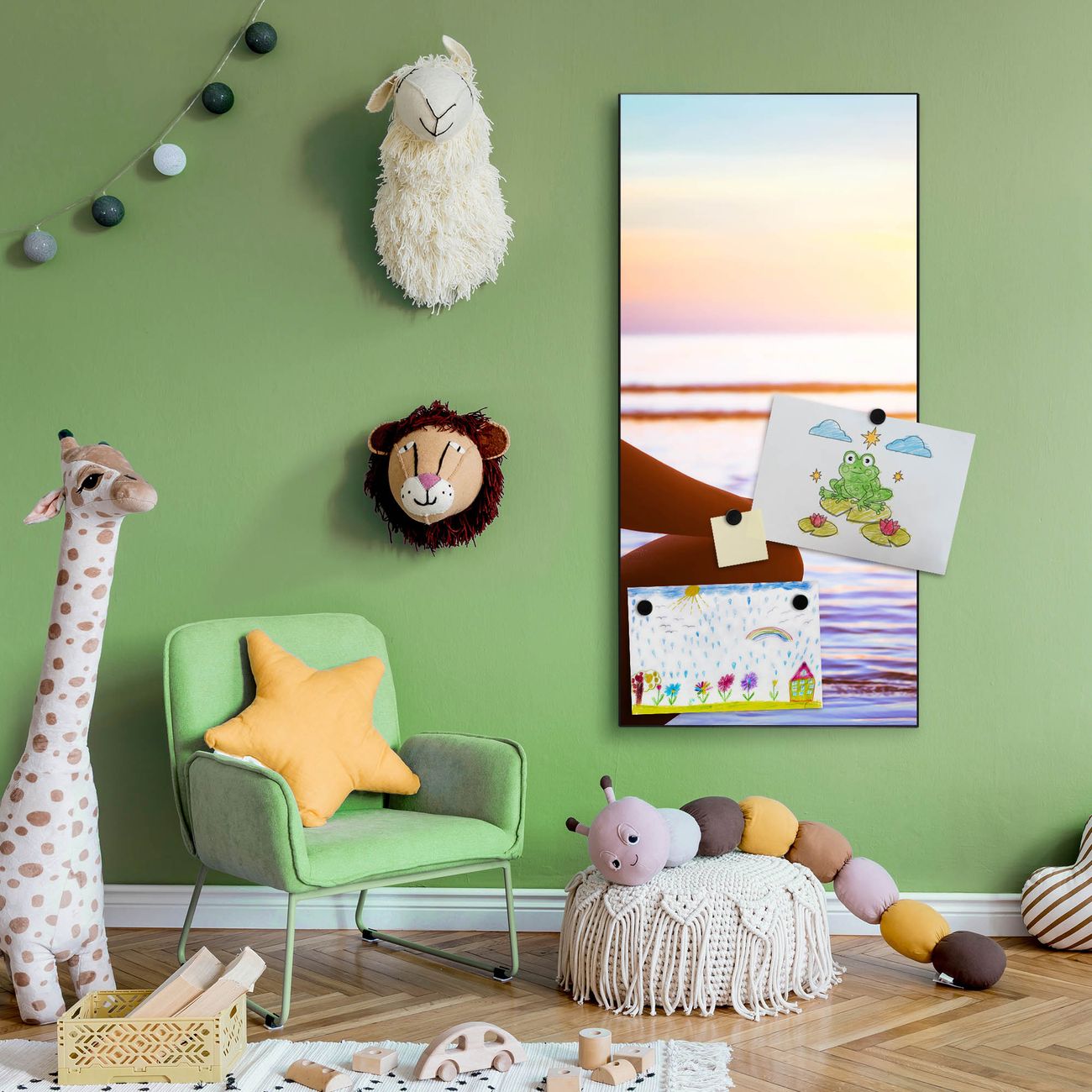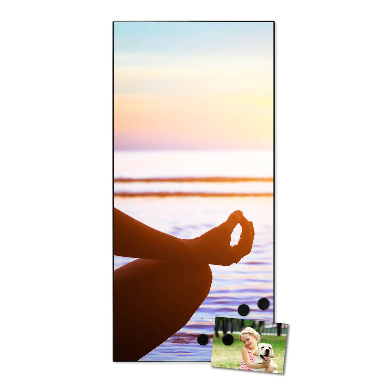 FUNKTION:  Die banjado Magnettafel mit Motiv Ruhe Motiv bringt Ordnung in Ihr Zettelchaos. Fotos, Termine, Notizen oder Rezepte lassen Sich hier stilvoll mit Magneten ordnen, Sie behalten alles im Blick. An der Design Magnettafel halten alle handesüblichen Magnete. DESIGN:  Die magnetische Pinnwand mit dem Motiv Motiv Ruhe ist ein eleganter Begleiter im Alltag. Mit dieser Memotafel aus Metall haben Sie auch ohne Notizen und Magnete ein schönes Dekoelement. Das Format bietet Ihnen ausreichend Platz um alle wichtigen Informationen im Blick zu behalten. DETAILS:  Die Magnettafel besteht aus silber-grau, weiß oder schwarzlackiertem Stahl. Sie hat eine Größe von 37 x 78 x 2cm. Es befinden sich auf der Rückseite vorgefertigte Aufhängungen die eine schnelle und unkomplizierte Anbringung ermöglichen. Das Motiv ist mit einem seidenmatten Laminat versehen und schützt so zusätzlich vor Kratzern. NUTZEN:  Sie können dieses Memoboard groß als Wandbild nutzen, es halten alle handelsüblichen Magneten daran. Die Pinnwand ist mit einem feuchten Lappen oder Schwamm abwischbar. Sie finden bei uns eine große Auswahl an passenden Magneten. BANJADO:  Wir sind ein kleines Team aus dem Herzen von Sachsen. Wir fertigen alle Artikel von Hand für Sie an, Sie erhalten keine preiswerte Importware. Auf Wunsch können Sie auch Ihr eigenes Foto auf die Magnettafel aufbringen, schreiben Sie uns an. Herzlichst, Ihr banjado-Team
