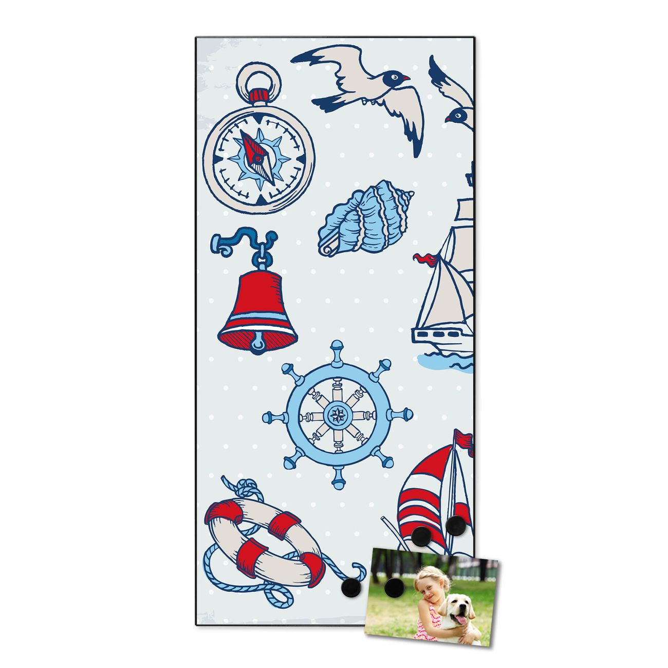 FUNKTION:  Die banjado Magnettafel mit Motiv Schiff Ahoj Motiv bringt Ordnung in Ihr Zettelchaos. Fotos, Termine, Notizen oder Rezepte lassen Sich hier stilvoll mit Magneten ordnen, Sie behalten alles im Blick. An der Design Magnettafel halten alle handesüblichen Magnete. DESIGN:  Die magnetische Pinnwand mit dem Motiv Motiv Schiff Ahoj ist ein eleganter Begleiter im Alltag. Mit dieser Memotafel aus Metall haben Sie auch ohne Notizen und Magnete ein schönes Dekoelement. Das Format bietet Ihnen ausreichend Platz um alle wichtigen Informationen im Blick zu behalten. DETAILS:  Die Magnettafel besteht aus silber-grau, weiß oder schwarzlackiertem Stahl. Sie hat eine Größe von 37 x 78 x 2cm. Es befinden sich auf der Rückseite vorgefertigte Aufhängungen die eine schnelle und unkomplizierte Anbringung ermöglichen. Das Motiv ist mit einem seidenmatten Laminat versehen und schützt so zusätzlich vor Kratzern. NUTZEN:  Sie können dieses Memoboard groß als Wandbild nutzen, es halten alle handelsüblichen Magneten daran. Die Pinnwand ist mit einem feuchten Lappen oder Schwamm abwischbar. Sie finden bei uns eine große Auswahl an passenden Magneten. BANJADO:  Wir sind ein kleines Team aus dem Herzen von Sachsen. Wir fertigen alle Artikel von Hand für Sie an, Sie erhalten keine preiswerte Importware. Auf Wunsch können Sie auch Ihr eigenes Foto auf die Magnettafel aufbringen, schreiben Sie uns an. Herzlichst, Ihr banjado-Team