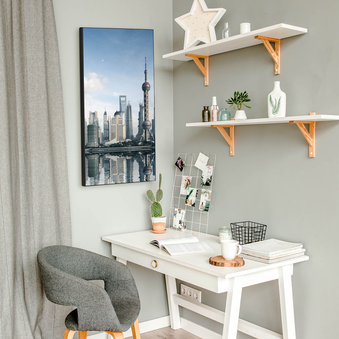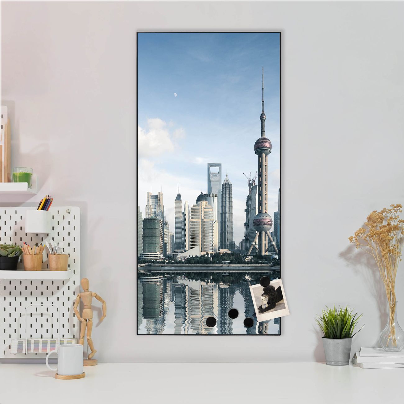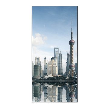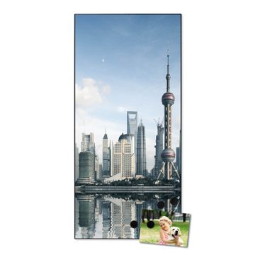 FUNKTION:  Die banjado Magnettafel mit Motiv Shanghai Motiv bringt Ordnung in Ihr Zettelchaos. Fotos, Termine, Notizen oder Rezepte lassen Sich hier stilvoll mit Magneten ordnen, Sie behalten alles im Blick. An der Design Magnettafel halten alle handesüblichen Magnete. DESIGN:  Die magnetische Pinnwand mit dem Motiv Motiv Shanghai ist ein eleganter Begleiter im Alltag. Mit dieser Memotafel aus Metall haben Sie auch ohne Notizen und Magnete ein schönes Dekoelement. Das Format bietet Ihnen ausreichend Platz um alle wichtigen Informationen im Blick zu behalten. DETAILS:  Die Magnettafel besteht aus silber-grau, weiß oder schwarzlackiertem Stahl. Sie hat eine Größe von 37 x 78 x 2cm. Es befinden sich auf der Rückseite vorgefertigte Aufhängungen die eine schnelle und unkomplizierte Anbringung ermöglichen. Das Motiv ist mit einem seidenmatten Laminat versehen und schützt so zusätzlich vor Kratzern. NUTZEN:  Sie können dieses Memoboard groß als Wandbild nutzen, es halten alle handelsüblichen Magneten daran. Die Pinnwand ist mit einem feuchten Lappen oder Schwamm abwischbar. Sie finden bei uns eine große Auswahl an passenden Magneten. BANJADO:  Wir sind ein kleines Team aus dem Herzen von Sachsen. Wir fertigen alle Artikel von Hand für Sie an, Sie erhalten keine preiswerte Importware. Auf Wunsch können Sie auch Ihr eigenes Foto auf die Magnettafel aufbringen, schreiben Sie uns an. Herzlichst, Ihr banjado-Team