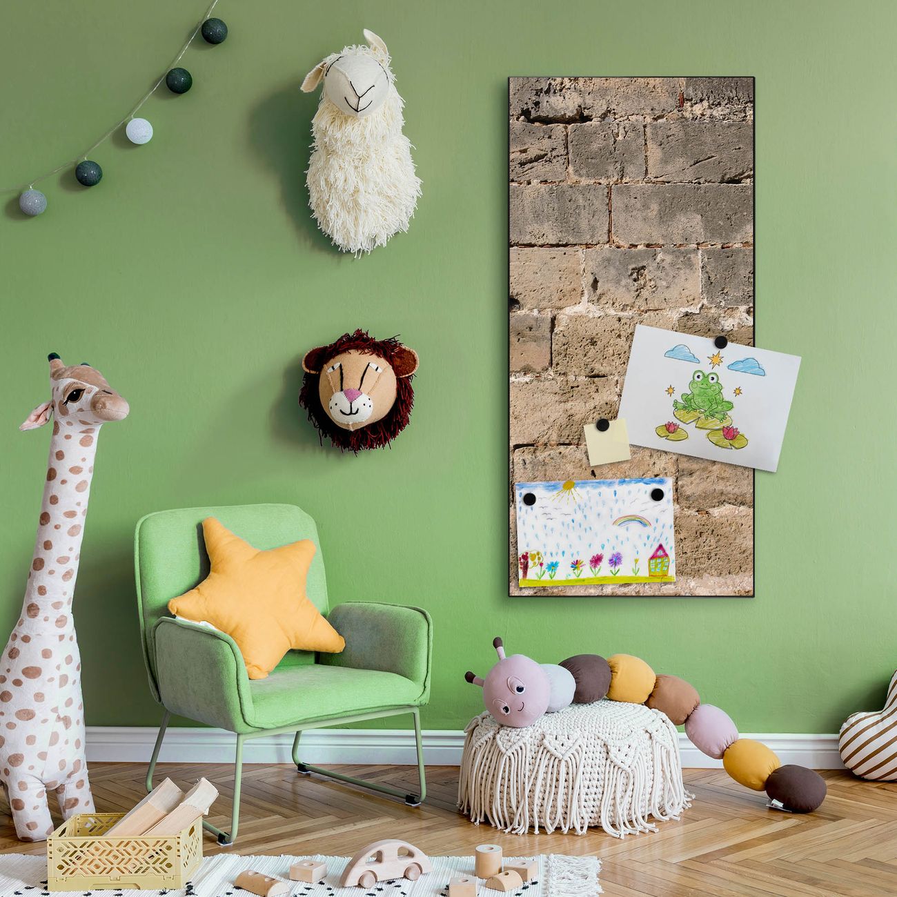 FUNKTION:  Die banjado Magnettafel mit Motiv Steinwand Antik Motiv bringt Ordnung in Ihr Zettelchaos. Fotos, Termine, Notizen oder Rezepte lassen Sich hier stilvoll mit Magneten ordnen, Sie behalten alles im Blick. An der Design Magnettafel halten alle handesüblichen Magnete. DESIGN:  Die magnetische Pinnwand mit dem Motiv Motiv Steinwand Antik ist ein eleganter Begleiter im Alltag. Mit dieser Memotafel aus Metall haben Sie auch ohne Notizen und Magnete ein schönes Dekoelement. Das Format bietet Ihnen ausreichend Platz um alle wichtigen Informationen im Blick zu behalten. DETAILS:  Die Magnettafel besteht aus silber-grau, weiß oder schwarzlackiertem Stahl. Sie hat eine Größe von 37 x 78 x 2cm. Es befinden sich auf der Rückseite vorgefertigte Aufhängungen die eine schnelle und unkomplizierte Anbringung ermöglichen. Das Motiv ist mit einem seidenmatten Laminat versehen und schützt so zusätzlich vor Kratzern. NUTZEN:  Sie können dieses Memoboard groß als Wandbild nutzen, es halten alle handelsüblichen Magneten daran. Die Pinnwand ist mit einem feuchten Lappen oder Schwamm abwischbar. Sie finden bei uns eine große Auswahl an passenden Magneten. BANJADO:  Wir sind ein kleines Team aus dem Herzen von Sachsen. Wir fertigen alle Artikel von Hand für Sie an, Sie erhalten keine preiswerte Importware. Auf Wunsch können Sie auch Ihr eigenes Foto auf die Magnettafel aufbringen, schreiben Sie uns an. Herzlichst, Ihr banjado-Team
