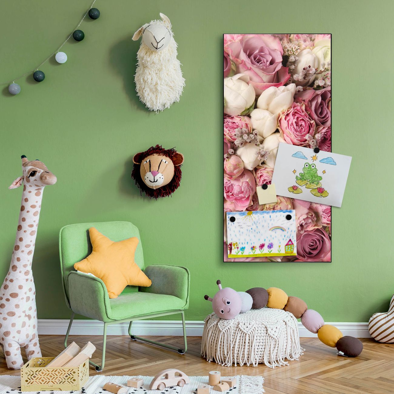 Stahl Magnettafel Hochformat 78x37cm Strauss Rosen