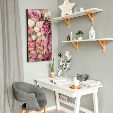 FUNKTION:  Die banjado Magnettafel mit Motiv Strauss Rosen Motiv bringt Ordnung in Ihr Zettelchaos. Fotos, Termine, Notizen oder Rezepte lassen Sich hier stilvoll mit Magneten ordnen, Sie behalten alles im Blick. An der Design Magnettafel halten alle handesüblichen Magnete. DESIGN:  Die magnetische Pinnwand mit dem Motiv Motiv Strauss Rosen ist ein eleganter Begleiter im Alltag. Mit dieser Memotafel aus Metall haben Sie auch ohne Notizen und Magnete ein schönes Dekoelement. Das Format bietet Ihnen ausreichend Platz um alle wichtigen Informationen im Blick zu behalten. DETAILS:  Die Magnettafel besteht aus silber-grau, weiß oder schwarzlackiertem Stahl. Sie hat eine Größe von 37 x 78 x 2cm. Es befinden sich auf der Rückseite vorgefertigte Aufhängungen die eine schnelle und unkomplizierte Anbringung ermöglichen. Das Motiv ist mit einem seidenmatten Laminat versehen und schützt so zusätzlich vor Kratzern. NUTZEN:  Sie können dieses Memoboard groß als Wandbild nutzen, es halten alle handelsüblichen Magneten daran. Die Pinnwand ist mit einem feuchten Lappen oder Schwamm abwischbar. Sie finden bei uns eine große Auswahl an passenden Magneten. BANJADO:  Wir sind ein kleines Team aus dem Herzen von Sachsen. Wir fertigen alle Artikel von Hand für Sie an, Sie erhalten keine preiswerte Importware. Auf Wunsch können Sie auch Ihr eigenes Foto auf die Magnettafel aufbringen, schreiben Sie uns an. Herzlichst, Ihr banjado-Team