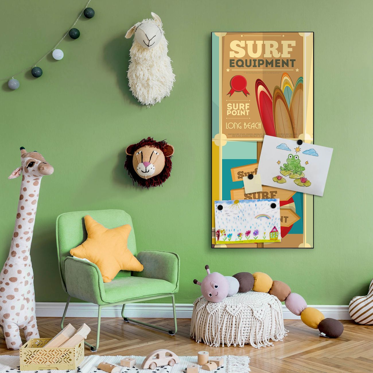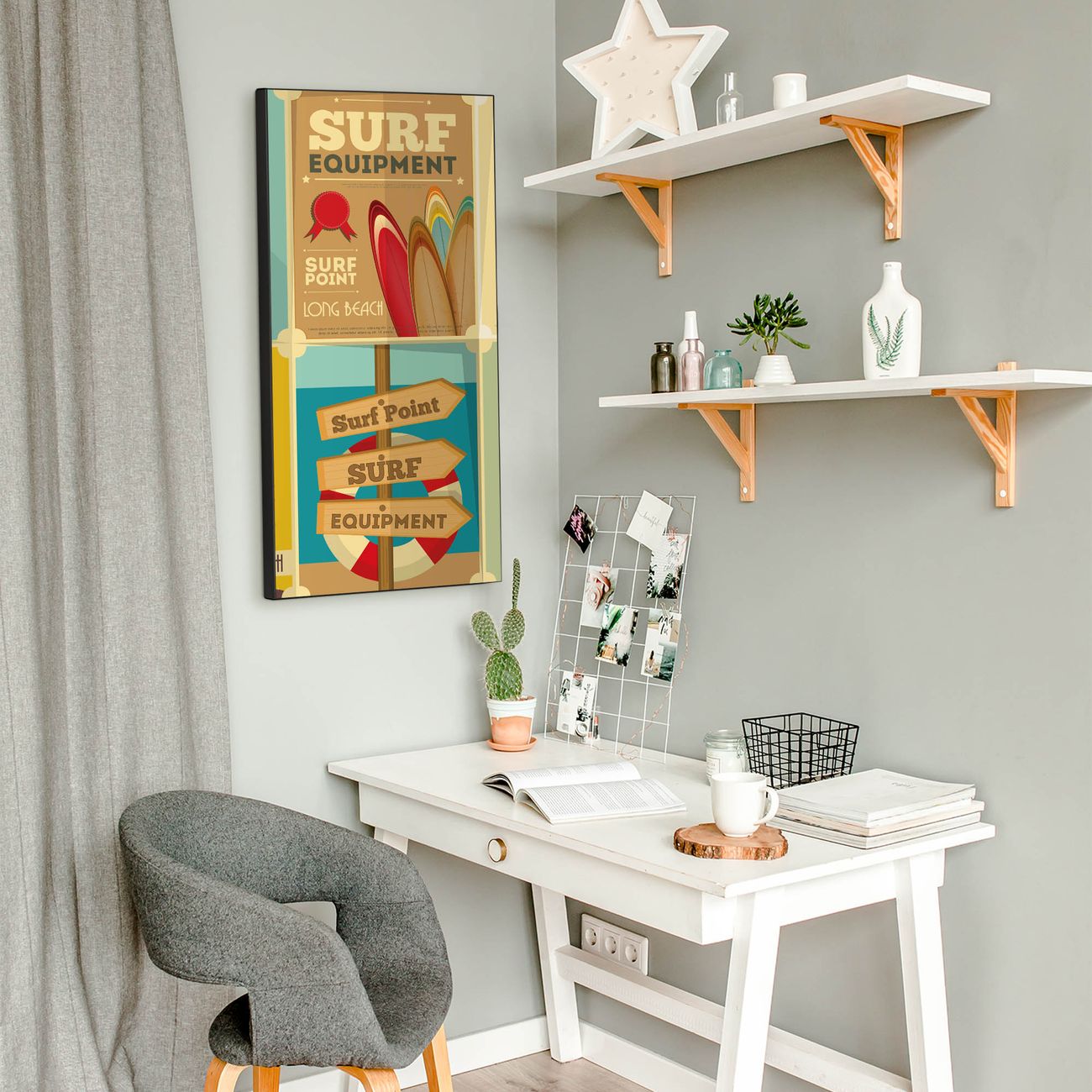 FUNKTION:  Die banjado Magnettafel mit Motiv Surf Point Motiv bringt Ordnung in Ihr Zettelchaos. Fotos, Termine, Notizen oder Rezepte lassen Sich hier stilvoll mit Magneten ordnen, Sie behalten alles im Blick. An der Design Magnettafel halten alle handesüblichen Magnete. DESIGN:  Die magnetische Pinnwand mit dem Motiv Motiv Surf Point ist ein eleganter Begleiter im Alltag. Mit dieser Memotafel aus Metall haben Sie auch ohne Notizen und Magnete ein schönes Dekoelement. Das Format bietet Ihnen ausreichend Platz um alle wichtigen Informationen im Blick zu behalten. DETAILS:  Die Magnettafel besteht aus silber-grau, weiß oder schwarzlackiertem Stahl. Sie hat eine Größe von 37 x 78 x 2cm. Es befinden sich auf der Rückseite vorgefertigte Aufhängungen die eine schnelle und unkomplizierte Anbringung ermöglichen. Das Motiv ist mit einem seidenmatten Laminat versehen und schützt so zusätzlich vor Kratzern. NUTZEN:  Sie können dieses Memoboard groß als Wandbild nutzen, es halten alle handelsüblichen Magneten daran. Die Pinnwand ist mit einem feuchten Lappen oder Schwamm abwischbar. Sie finden bei uns eine große Auswahl an passenden Magneten. BANJADO:  Wir sind ein kleines Team aus dem Herzen von Sachsen. Wir fertigen alle Artikel von Hand für Sie an, Sie erhalten keine preiswerte Importware. Auf Wunsch können Sie auch Ihr eigenes Foto auf die Magnettafel aufbringen, schreiben Sie uns an. Herzlichst, Ihr banjado-Team