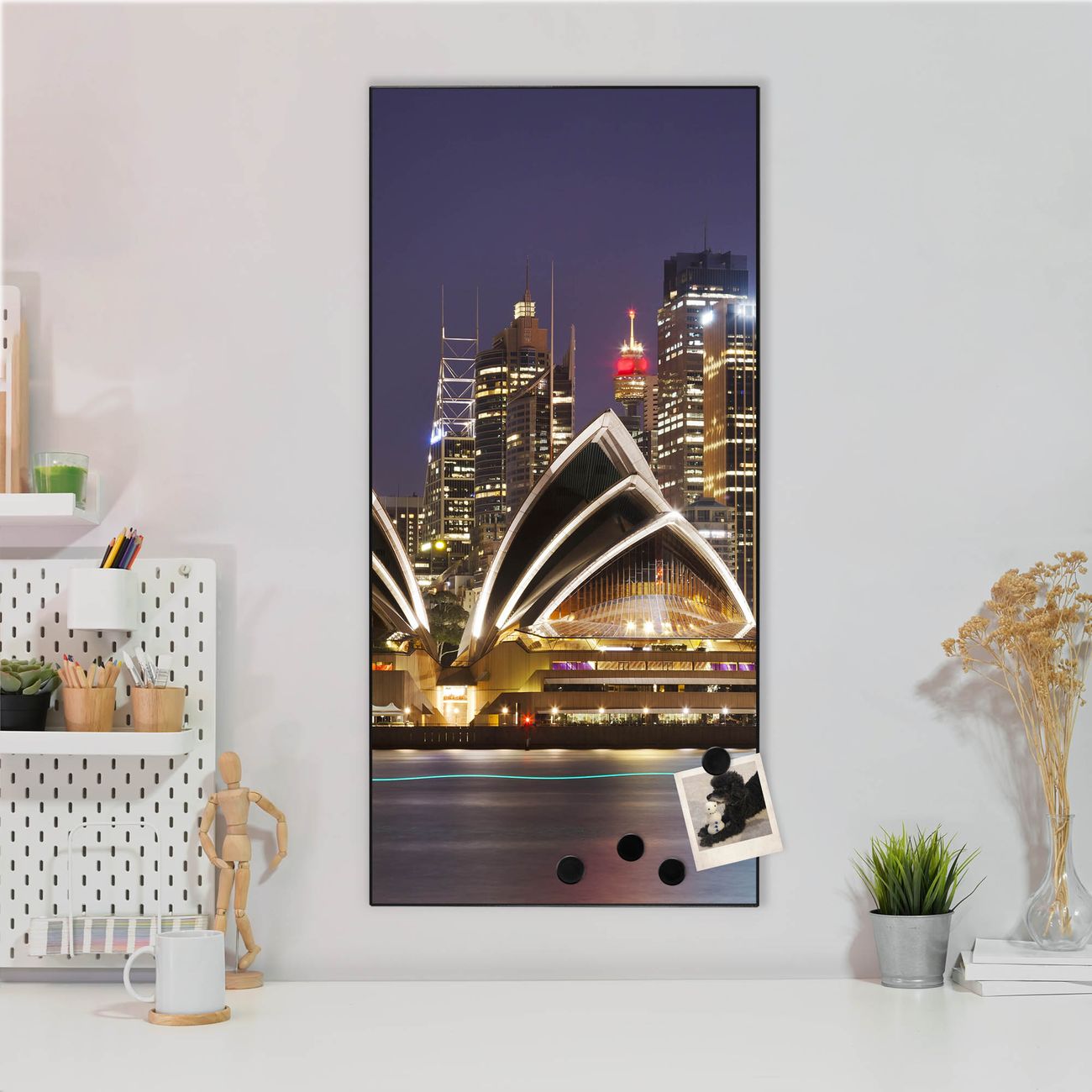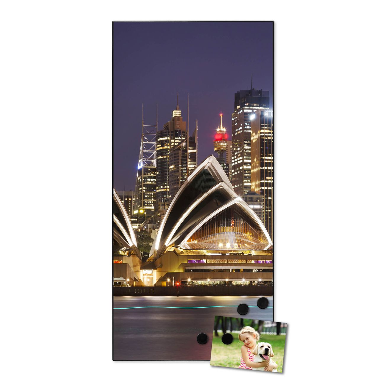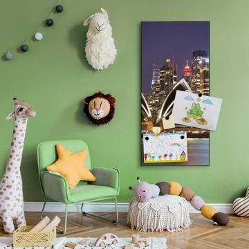 FUNKTION:  Die banjado Magnettafel mit Motiv Sydney Motiv bringt Ordnung in Ihr Zettelchaos. Fotos, Termine, Notizen oder Rezepte lassen Sich hier stilvoll mit Magneten ordnen, Sie behalten alles im Blick. An der Design Magnettafel halten alle handesüblichen Magnete. DESIGN:  Die magnetische Pinnwand mit dem Motiv Motiv Sydney ist ein eleganter Begleiter im Alltag. Mit dieser Memotafel aus Metall haben Sie auch ohne Notizen und Magnete ein schönes Dekoelement. Das Format bietet Ihnen ausreichend Platz um alle wichtigen Informationen im Blick zu behalten. DETAILS:  Die Magnettafel besteht aus silber-grau, weiß oder schwarzlackiertem Stahl. Sie hat eine Größe von 37 x 78 x 2cm. Es befinden sich auf der Rückseite vorgefertigte Aufhängungen die eine schnelle und unkomplizierte Anbringung ermöglichen. Das Motiv ist mit einem seidenmatten Laminat versehen und schützt so zusätzlich vor Kratzern. NUTZEN:  Sie können dieses Memoboard groß als Wandbild nutzen, es halten alle handelsüblichen Magneten daran. Die Pinnwand ist mit einem feuchten Lappen oder Schwamm abwischbar. Sie finden bei uns eine große Auswahl an passenden Magneten. BANJADO:  Wir sind ein kleines Team aus dem Herzen von Sachsen. Wir fertigen alle Artikel von Hand für Sie an, Sie erhalten keine preiswerte Importware. Auf Wunsch können Sie auch Ihr eigenes Foto auf die Magnettafel aufbringen, schreiben Sie uns an. Herzlichst, Ihr banjado-Team