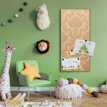 FUNKTION:  Die banjado Magnettafel mit Motiv Tapete Beige Motiv bringt Ordnung in Ihr Zettelchaos. Fotos, Termine, Notizen oder Rezepte lassen Sich hier stilvoll mit Magneten ordnen, Sie behalten alles im Blick. An der Design Magnettafel halten alle handesüblichen Magnete. DESIGN:  Die magnetische Pinnwand mit dem Motiv Motiv Tapete Beige ist ein eleganter Begleiter im Alltag. Mit dieser Memotafel aus Metall haben Sie auch ohne Notizen und Magnete ein schönes Dekoelement. Das Format bietet Ihnen ausreichend Platz um alle wichtigen Informationen im Blick zu behalten. DETAILS:  Die Magnettafel besteht aus silber-grau, weiß oder schwarzlackiertem Stahl. Sie hat eine Größe von 37 x 78 x 2cm. Es befinden sich auf der Rückseite vorgefertigte Aufhängungen die eine schnelle und unkomplizierte Anbringung ermöglichen. Das Motiv ist mit einem seidenmatten Laminat versehen und schützt so zusätzlich vor Kratzern. NUTZEN:  Sie können dieses Memoboard groß als Wandbild nutzen, es halten alle handelsüblichen Magneten daran. Die Pinnwand ist mit einem feuchten Lappen oder Schwamm abwischbar. Sie finden bei uns eine große Auswahl an passenden Magneten. BANJADO:  Wir sind ein kleines Team aus dem Herzen von Sachsen. Wir fertigen alle Artikel von Hand für Sie an, Sie erhalten keine preiswerte Importware. Auf Wunsch können Sie auch Ihr eigenes Foto auf die Magnettafel aufbringen, schreiben Sie uns an. Herzlichst, Ihr banjado-Team