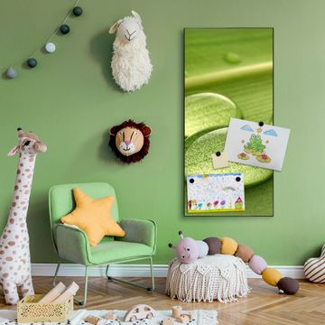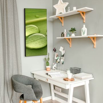 FUNKTION:  Die banjado Magnettafel mit Motiv Tautropfen Motiv bringt Ordnung in Ihr Zettelchaos. Fotos, Termine, Notizen oder Rezepte lassen Sich hier stilvoll mit Magneten ordnen, Sie behalten alles im Blick. An der Design Magnettafel halten alle handesüblichen Magnete. DESIGN:  Die magnetische Pinnwand mit dem Motiv Motiv Tautropfen ist ein eleganter Begleiter im Alltag. Mit dieser Memotafel aus Metall haben Sie auch ohne Notizen und Magnete ein schönes Dekoelement. Das Format bietet Ihnen ausreichend Platz um alle wichtigen Informationen im Blick zu behalten. DETAILS:  Die Magnettafel besteht aus silber-grau, weiß oder schwarzlackiertem Stahl. Sie hat eine Größe von 37 x 78 x 2cm. Es befinden sich auf der Rückseite vorgefertigte Aufhängungen die eine schnelle und unkomplizierte Anbringung ermöglichen. Das Motiv ist mit einem seidenmatten Laminat versehen und schützt so zusätzlich vor Kratzern. NUTZEN:  Sie können dieses Memoboard groß als Wandbild nutzen, es halten alle handelsüblichen Magneten daran. Die Pinnwand ist mit einem feuchten Lappen oder Schwamm abwischbar. Sie finden bei uns eine große Auswahl an passenden Magneten. BANJADO:  Wir sind ein kleines Team aus dem Herzen von Sachsen. Wir fertigen alle Artikel von Hand für Sie an, Sie erhalten keine preiswerte Importware. Auf Wunsch können Sie auch Ihr eigenes Foto auf die Magnettafel aufbringen, schreiben Sie uns an. Herzlichst, Ihr banjado-Team