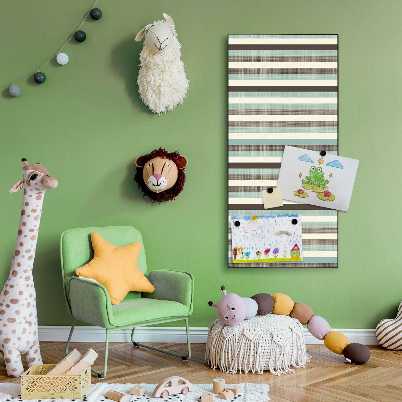 FUNKTION:  Die banjado Magnettafel mit Motiv Textile Streifen Motiv bringt Ordnung in Ihr Zettelchaos. Fotos, Termine, Notizen oder Rezepte lassen Sich hier stilvoll mit Magneten ordnen, Sie behalten alles im Blick. An der Design Magnettafel halten alle handesüblichen Magnete. DESIGN:  Die magnetische Pinnwand mit dem Motiv Motiv Textile Streifen ist ein eleganter Begleiter im Alltag. Mit dieser Memotafel aus Metall haben Sie auch ohne Notizen und Magnete ein schönes Dekoelement. Das Format bietet Ihnen ausreichend Platz um alle wichtigen Informationen im Blick zu behalten. DETAILS:  Die Magnettafel besteht aus silber-grau, weiß oder schwarzlackiertem Stahl. Sie hat eine Größe von 37 x 78 x 2cm. Es befinden sich auf der Rückseite vorgefertigte Aufhängungen die eine schnelle und unkomplizierte Anbringung ermöglichen. Das Motiv ist mit einem seidenmatten Laminat versehen und schützt so zusätzlich vor Kratzern. NUTZEN:  Sie können dieses Memoboard groß als Wandbild nutzen, es halten alle handelsüblichen Magneten daran. Die Pinnwand ist mit einem feuchten Lappen oder Schwamm abwischbar. Sie finden bei uns eine große Auswahl an passenden Magneten. BANJADO:  Wir sind ein kleines Team aus dem Herzen von Sachsen. Wir fertigen alle Artikel von Hand für Sie an, Sie erhalten keine preiswerte Importware. Auf Wunsch können Sie auch Ihr eigenes Foto auf die Magnettafel aufbringen, schreiben Sie uns an. Herzlichst, Ihr banjado-Team