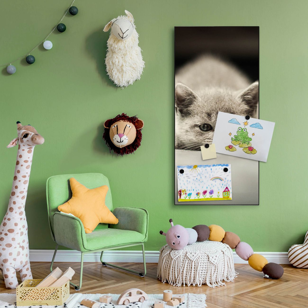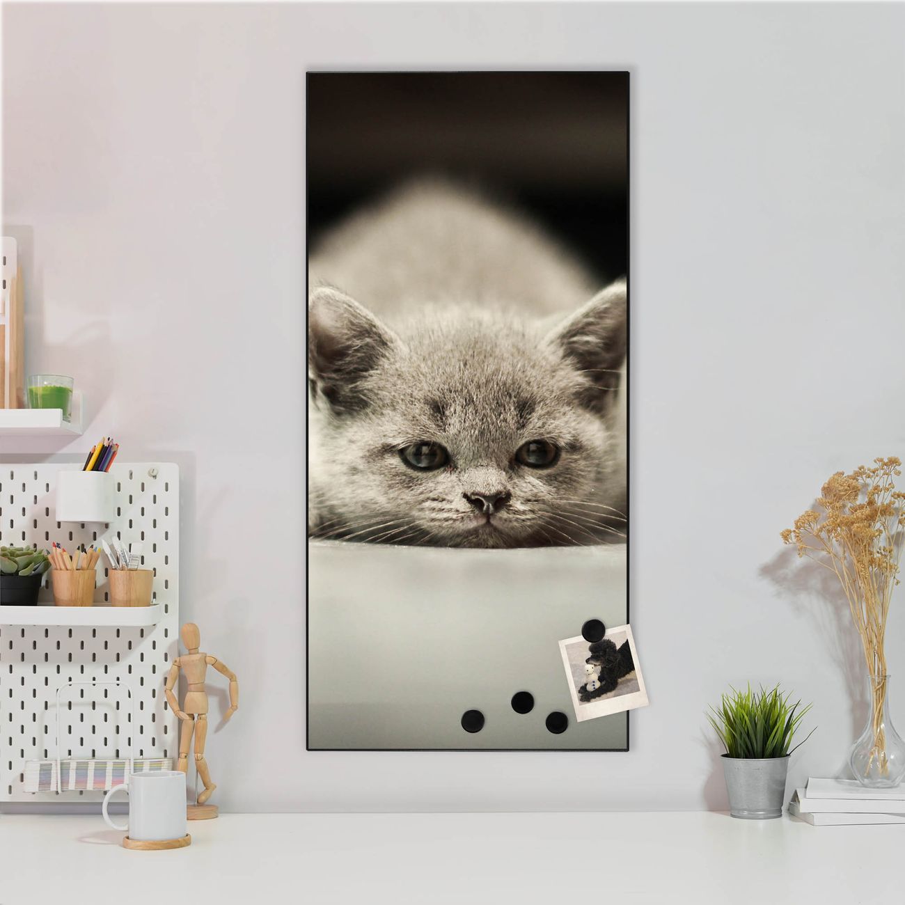 FUNKTION:  Die banjado Magnettafel mit Motiv Theodor Motiv bringt Ordnung in Ihr Zettelchaos. Fotos, Termine, Notizen oder Rezepte lassen Sich hier stilvoll mit Magneten ordnen, Sie behalten alles im Blick. An der Design Magnettafel halten alle handesüblichen Magnete. DESIGN:  Die magnetische Pinnwand mit dem Motiv Motiv Theodor ist ein eleganter Begleiter im Alltag. Mit dieser Memotafel aus Metall haben Sie auch ohne Notizen und Magnete ein schönes Dekoelement. Das Format bietet Ihnen ausreichend Platz um alle wichtigen Informationen im Blick zu behalten. DETAILS:  Die Magnettafel besteht aus silber-grau, weiß oder schwarzlackiertem Stahl. Sie hat eine Größe von 37 x 78 x 2cm. Es befinden sich auf der Rückseite vorgefertigte Aufhängungen die eine schnelle und unkomplizierte Anbringung ermöglichen. Das Motiv ist mit einem seidenmatten Laminat versehen und schützt so zusätzlich vor Kratzern. NUTZEN:  Sie können dieses Memoboard groß als Wandbild nutzen, es halten alle handelsüblichen Magneten daran. Die Pinnwand ist mit einem feuchten Lappen oder Schwamm abwischbar. Sie finden bei uns eine große Auswahl an passenden Magneten. BANJADO:  Wir sind ein kleines Team aus dem Herzen von Sachsen. Wir fertigen alle Artikel von Hand für Sie an, Sie erhalten keine preiswerte Importware. Auf Wunsch können Sie auch Ihr eigenes Foto auf die Magnettafel aufbringen, schreiben Sie uns an. Herzlichst, Ihr banjado-Team