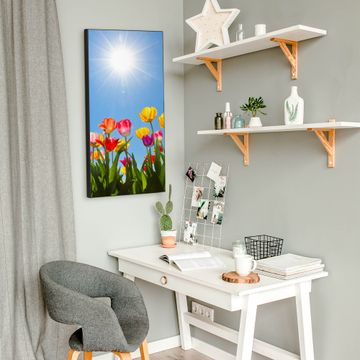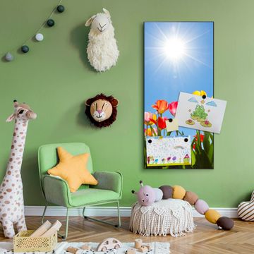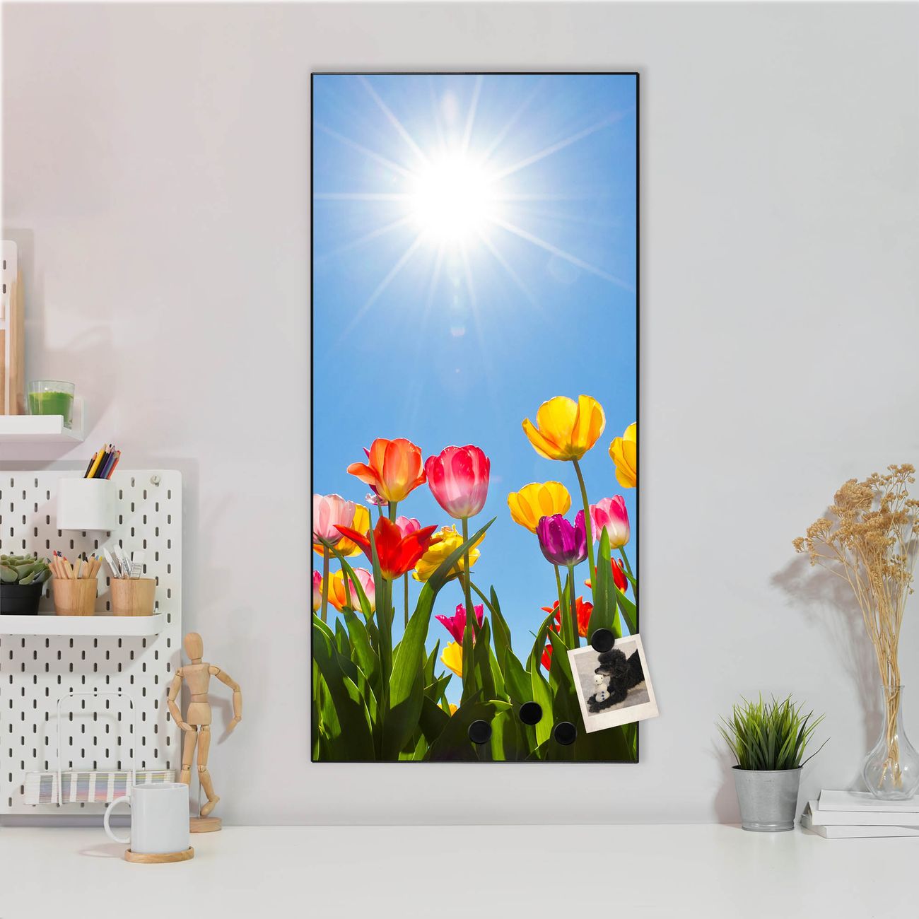FUNKTION:  Die banjado Magnettafel mit Motiv Tulpenmeer Motiv bringt Ordnung in Ihr Zettelchaos. Fotos, Termine, Notizen oder Rezepte lassen Sich hier stilvoll mit Magneten ordnen, Sie behalten alles im Blick. An der Design Magnettafel halten alle handesüblichen Magnete. DESIGN:  Die magnetische Pinnwand mit dem Motiv Motiv Tulpenmeer ist ein eleganter Begleiter im Alltag. Mit dieser Memotafel aus Metall haben Sie auch ohne Notizen und Magnete ein schönes Dekoelement. Das Format bietet Ihnen ausreichend Platz um alle wichtigen Informationen im Blick zu behalten. DETAILS:  Die Magnettafel besteht aus silber-grau, weiß oder schwarzlackiertem Stahl. Sie hat eine Größe von 37 x 78 x 2cm. Es befinden sich auf der Rückseite vorgefertigte Aufhängungen die eine schnelle und unkomplizierte Anbringung ermöglichen. Das Motiv ist mit einem seidenmatten Laminat versehen und schützt so zusätzlich vor Kratzern. NUTZEN:  Sie können dieses Memoboard groß als Wandbild nutzen, es halten alle handelsüblichen Magneten daran. Die Pinnwand ist mit einem feuchten Lappen oder Schwamm abwischbar. Sie finden bei uns eine große Auswahl an passenden Magneten. BANJADO:  Wir sind ein kleines Team aus dem Herzen von Sachsen. Wir fertigen alle Artikel von Hand für Sie an, Sie erhalten keine preiswerte Importware. Auf Wunsch können Sie auch Ihr eigenes Foto auf die Magnettafel aufbringen, schreiben Sie uns an. Herzlichst, Ihr banjado-Team