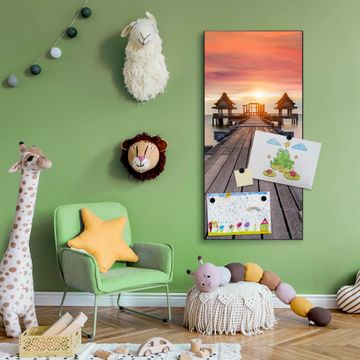 FUNKTION:  Die banjado Magnettafel mit Motiv Überm Nebelmeer Motiv bringt Ordnung in Ihr Zettelchaos. Fotos, Termine, Notizen oder Rezepte lassen Sich hier stilvoll mit Magneten ordnen, Sie behalten alles im Blick. An der Design Magnettafel halten alle handesüblichen Magnete. DESIGN:  Die magnetische Pinnwand mit dem Motiv Motiv Überm Nebelmeer ist ein eleganter Begleiter im Alltag. Mit dieser Memotafel aus Metall haben Sie auch ohne Notizen und Magnete ein schönes Dekoelement. Das Format bietet Ihnen ausreichend Platz um alle wichtigen Informationen im Blick zu behalten. DETAILS:  Die Magnettafel besteht aus silber-grau, weiß oder schwarzlackiertem Stahl. Sie hat eine Größe von 37 x 78 x 2cm. Es befinden sich auf der Rückseite vorgefertigte Aufhängungen die eine schnelle und unkomplizierte Anbringung ermöglichen. Das Motiv ist mit einem seidenmatten Laminat versehen und schützt so zusätzlich vor Kratzern. NUTZEN:  Sie können dieses Memoboard groß als Wandbild nutzen, es halten alle handelsüblichen Magneten daran. Die Pinnwand ist mit einem feuchten Lappen oder Schwamm abwischbar. Sie finden bei uns eine große Auswahl an passenden Magneten. BANJADO:  Wir sind ein kleines Team aus dem Herzen von Sachsen. Wir fertigen alle Artikel von Hand für Sie an, Sie erhalten keine preiswerte Importware. Auf Wunsch können Sie auch Ihr eigenes Foto auf die Magnettafel aufbringen, schreiben Sie uns an. Herzlichst, Ihr banjado-Team