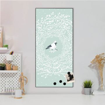 Stahl Magnettafel Hochformat 78x37cm Vogel im Kranz