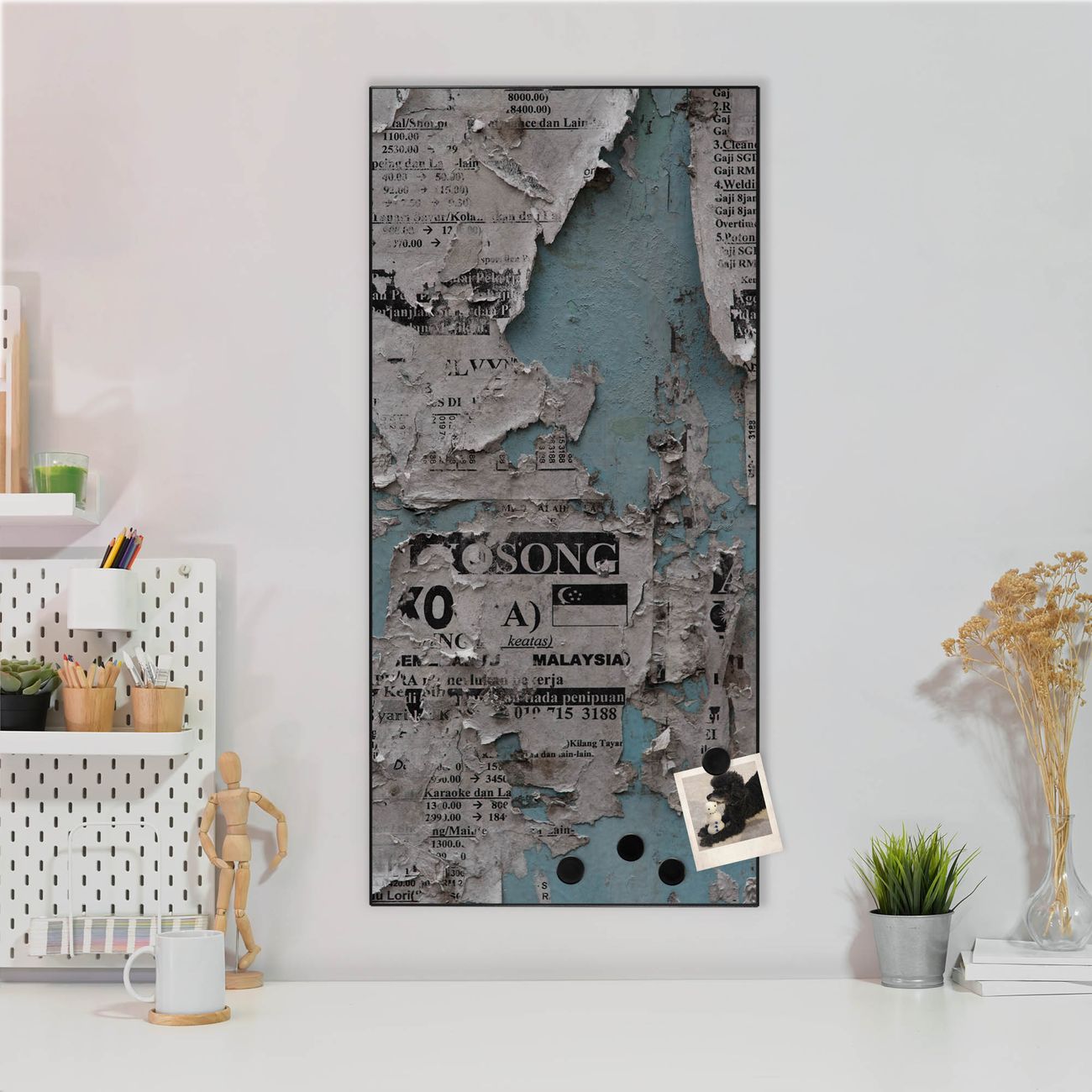 Stahl Magnettafel Hochformat 78x37cm Wand mit Zeitungen
