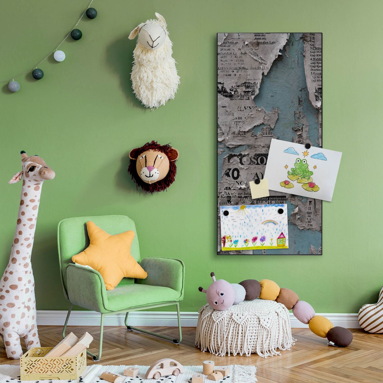 FUNKTION:  Die banjado Magnettafel mit Motiv Wand mit Zeitungen Motiv bringt Ordnung in Ihr Zettelchaos. Fotos, Termine, Notizen oder Rezepte lassen Sich hier stilvoll mit Magneten ordnen, Sie behalten alles im Blick. An der Design Magnettafel halten alle handesüblichen Magnete. DESIGN:  Die magnetische Pinnwand mit dem Motiv Motiv Wand mit Zeitungen ist ein eleganter Begleiter im Alltag. Mit dieser Memotafel aus Metall haben Sie auch ohne Notizen und Magnete ein schönes Dekoelement. Das Format bietet Ihnen ausreichend Platz um alle wichtigen Informationen im Blick zu behalten. DETAILS:  Die Magnettafel besteht aus silber-grau, weiß oder schwarzlackiertem Stahl. Sie hat eine Größe von 37 x 78 x 2cm. Es befinden sich auf der Rückseite vorgefertigte Aufhängungen die eine schnelle und unkomplizierte Anbringung ermöglichen. Das Motiv ist mit einem seidenmatten Laminat versehen und schützt so zusätzlich vor Kratzern. NUTZEN:  Sie können dieses Memoboard groß als Wandbild nutzen, es halten alle handelsüblichen Magneten daran. Die Pinnwand ist mit einem feuchten Lappen oder Schwamm abwischbar. Sie finden bei uns eine große Auswahl an passenden Magneten. BANJADO:  Wir sind ein kleines Team aus dem Herzen von Sachsen. Wir fertigen alle Artikel von Hand für Sie an, Sie erhalten keine preiswerte Importware. Auf Wunsch können Sie auch Ihr eigenes Foto auf die Magnettafel aufbringen, schreiben Sie uns an. Herzlichst, Ihr banjado-Team