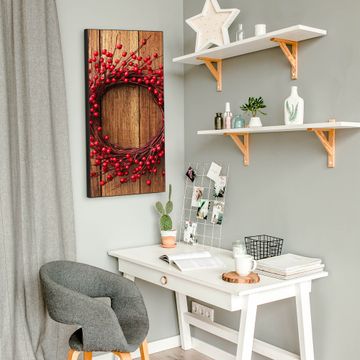 FUNKTION:  Die banjado Magnettafel mit Motiv Weihnachtskranz Motiv bringt Ordnung in Ihr Zettelchaos. Fotos, Termine, Notizen oder Rezepte lassen Sich hier stilvoll mit Magneten ordnen, Sie behalten alles im Blick. An der Design Magnettafel halten alle handesüblichen Magnete. DESIGN:  Die magnetische Pinnwand mit dem Motiv Motiv Weihnachtskranz ist ein eleganter Begleiter im Alltag. Mit dieser Memotafel aus Metall haben Sie auch ohne Notizen und Magnete ein schönes Dekoelement. Das Format bietet Ihnen ausreichend Platz um alle wichtigen Informationen im Blick zu behalten. DETAILS:  Die Magnettafel besteht aus silber-grau, weiß oder schwarzlackiertem Stahl. Sie hat eine Größe von 37 x 78 x 2cm. Es befinden sich auf der Rückseite vorgefertigte Aufhängungen die eine schnelle und unkomplizierte Anbringung ermöglichen. Das Motiv ist mit einem seidenmatten Laminat versehen und schützt so zusätzlich vor Kratzern. NUTZEN:  Sie können dieses Memoboard groß als Wandbild nutzen, es halten alle handelsüblichen Magneten daran. Die Pinnwand ist mit einem feuchten Lappen oder Schwamm abwischbar. Sie finden bei uns eine große Auswahl an passenden Magneten. BANJADO:  Wir sind ein kleines Team aus dem Herzen von Sachsen. Wir fertigen alle Artikel von Hand für Sie an, Sie erhalten keine preiswerte Importware. Auf Wunsch können Sie auch Ihr eigenes Foto auf die Magnettafel aufbringen, schreiben Sie uns an. Herzlichst, Ihr banjado-Team