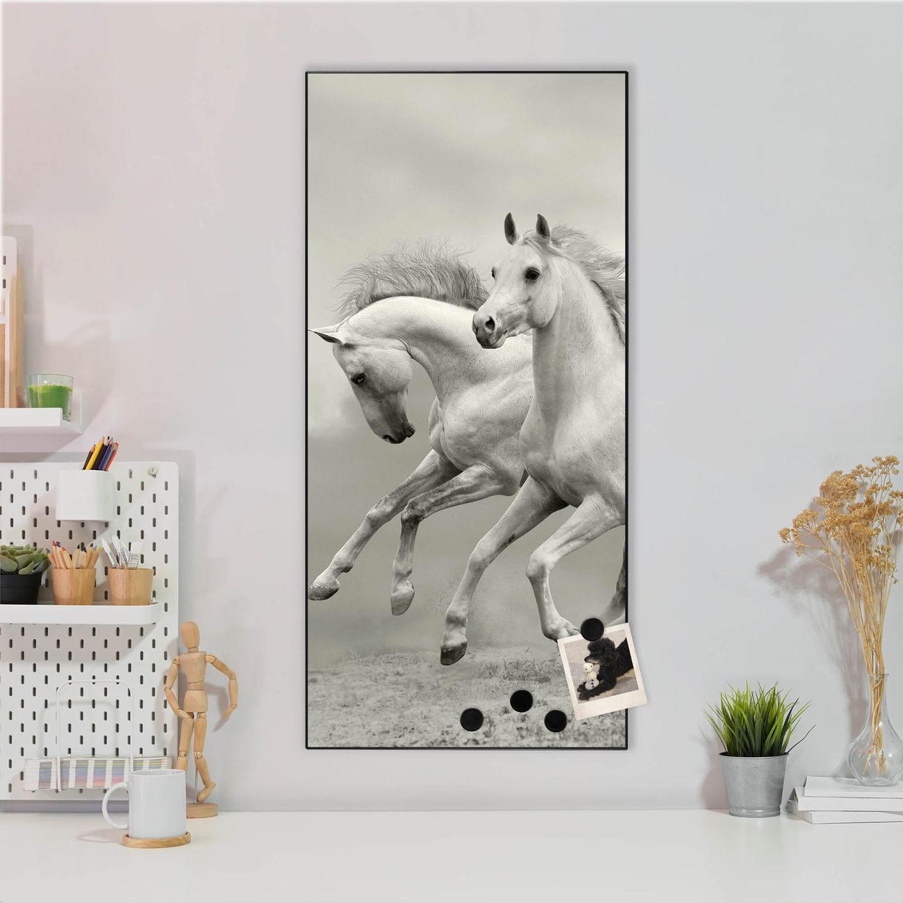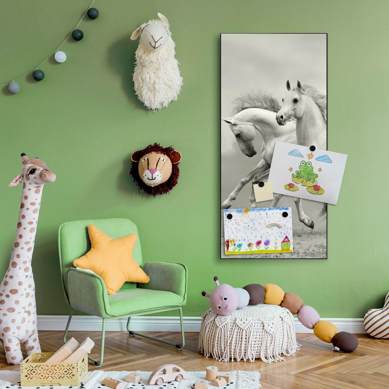 Stahl Magnettafel Hochformat 78x37cm Wilde Pferde SW