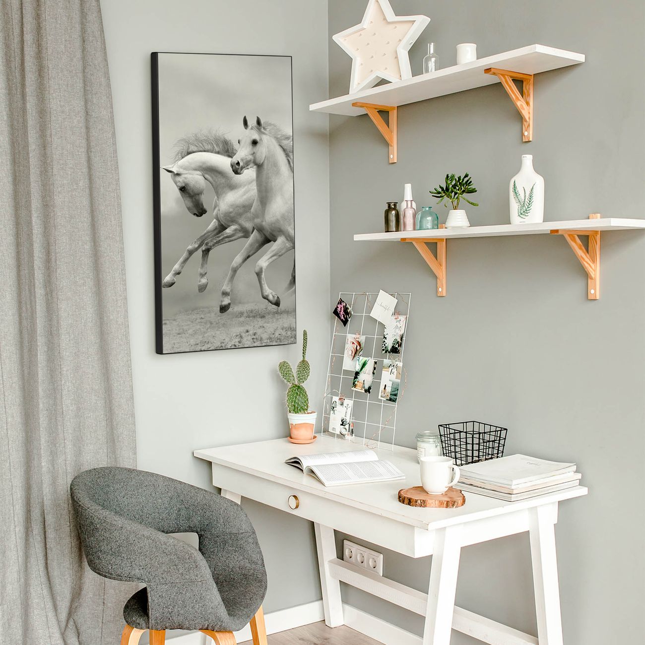 FUNKTION:  Die banjado Magnettafel mit Motiv Wilde Pferde SW Motiv bringt Ordnung in Ihr Zettelchaos. Fotos, Termine, Notizen oder Rezepte lassen Sich hier stilvoll mit Magneten ordnen, Sie behalten alles im Blick. An der Design Magnettafel halten alle handesüblichen Magnete. DESIGN:  Die magnetische Pinnwand mit dem Motiv Motiv Wilde Pferde SW ist ein eleganter Begleiter im Alltag. Mit dieser Memotafel aus Metall haben Sie auch ohne Notizen und Magnete ein schönes Dekoelement. Das Format bietet Ihnen ausreichend Platz um alle wichtigen Informationen im Blick zu behalten. DETAILS:  Die Magnettafel besteht aus silber-grau, weiß oder schwarzlackiertem Stahl. Sie hat eine Größe von 37 x 78 x 2cm. Es befinden sich auf der Rückseite vorgefertigte Aufhängungen die eine schnelle und unkomplizierte Anbringung ermöglichen. Das Motiv ist mit einem seidenmatten Laminat versehen und schützt so zusätzlich vor Kratzern. NUTZEN:  Sie können dieses Memoboard groß als Wandbild nutzen, es halten alle handelsüblichen Magneten daran. Die Pinnwand ist mit einem feuchten Lappen oder Schwamm abwischbar. Sie finden bei uns eine große Auswahl an passenden Magneten. BANJADO:  Wir sind ein kleines Team aus dem Herzen von Sachsen. Wir fertigen alle Artikel von Hand für Sie an, Sie erhalten keine preiswerte Importware. Auf Wunsch können Sie auch Ihr eigenes Foto auf die Magnettafel aufbringen, schreiben Sie uns an. Herzlichst, Ihr banjado-Team