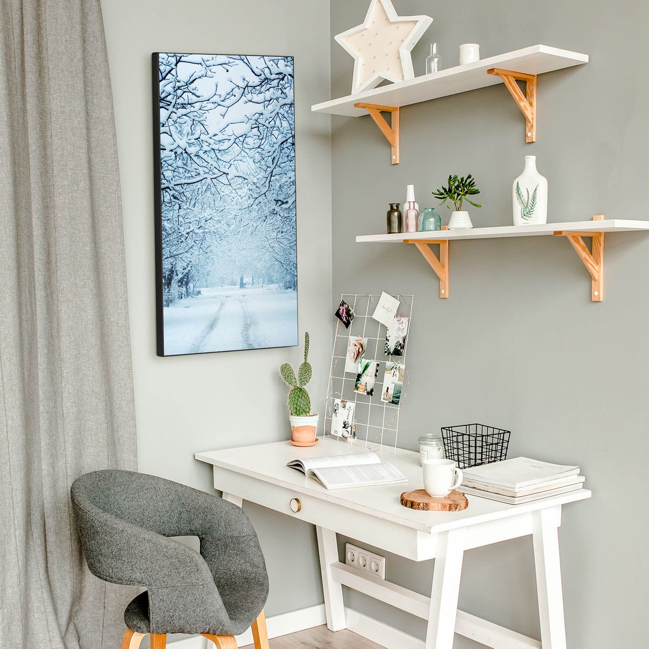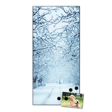 FUNKTION:  Die banjado Magnettafel mit Motiv Winterspaziergang Motiv bringt Ordnung in Ihr Zettelchaos. Fotos, Termine, Notizen oder Rezepte lassen Sich hier stilvoll mit Magneten ordnen, Sie behalten alles im Blick. An der Design Magnettafel halten alle handesüblichen Magnete. DESIGN:  Die magnetische Pinnwand mit dem Motiv Motiv Winterspaziergang ist ein eleganter Begleiter im Alltag. Mit dieser Memotafel aus Metall haben Sie auch ohne Notizen und Magnete ein schönes Dekoelement. Das Format bietet Ihnen ausreichend Platz um alle wichtigen Informationen im Blick zu behalten. DETAILS:  Die Magnettafel besteht aus silber-grau, weiß oder schwarzlackiertem Stahl. Sie hat eine Größe von 37 x 78 x 2cm. Es befinden sich auf der Rückseite vorgefertigte Aufhängungen die eine schnelle und unkomplizierte Anbringung ermöglichen. Das Motiv ist mit einem seidenmatten Laminat versehen und schützt so zusätzlich vor Kratzern. NUTZEN:  Sie können dieses Memoboard groß als Wandbild nutzen, es halten alle handelsüblichen Magneten daran. Die Pinnwand ist mit einem feuchten Lappen oder Schwamm abwischbar. Sie finden bei uns eine große Auswahl an passenden Magneten. BANJADO:  Wir sind ein kleines Team aus dem Herzen von Sachsen. Wir fertigen alle Artikel von Hand für Sie an, Sie erhalten keine preiswerte Importware. Auf Wunsch können Sie auch Ihr eigenes Foto auf die Magnettafel aufbringen, schreiben Sie uns an. Herzlichst, Ihr banjado-Team