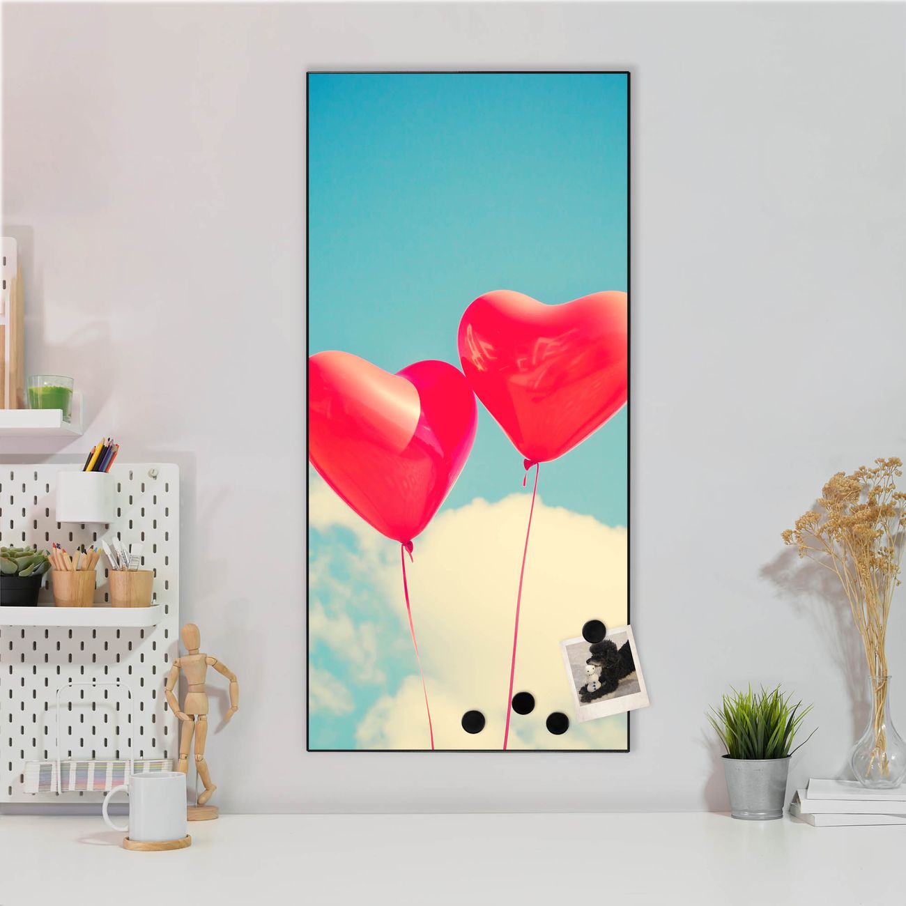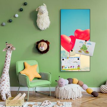 FUNKTION:  Die banjado Magnettafel mit Motiv Wolke Sieben Motiv bringt Ordnung in Ihr Zettelchaos. Fotos, Termine, Notizen oder Rezepte lassen Sich hier stilvoll mit Magneten ordnen, Sie behalten alles im Blick. An der Design Magnettafel halten alle handesüblichen Magnete. DESIGN:  Die magnetische Pinnwand mit dem Motiv Motiv Wolke Sieben ist ein eleganter Begleiter im Alltag. Mit dieser Memotafel aus Metall haben Sie auch ohne Notizen und Magnete ein schönes Dekoelement. Das Format bietet Ihnen ausreichend Platz um alle wichtigen Informationen im Blick zu behalten. DETAILS:  Die Magnettafel besteht aus silber-grau, weiß oder schwarzlackiertem Stahl. Sie hat eine Größe von 37 x 78 x 2cm. Es befinden sich auf der Rückseite vorgefertigte Aufhängungen die eine schnelle und unkomplizierte Anbringung ermöglichen. Das Motiv ist mit einem seidenmatten Laminat versehen und schützt so zusätzlich vor Kratzern. NUTZEN:  Sie können dieses Memoboard groß als Wandbild nutzen, es halten alle handelsüblichen Magneten daran. Die Pinnwand ist mit einem feuchten Lappen oder Schwamm abwischbar. Sie finden bei uns eine große Auswahl an passenden Magneten. BANJADO:  Wir sind ein kleines Team aus dem Herzen von Sachsen. Wir fertigen alle Artikel von Hand für Sie an, Sie erhalten keine preiswerte Importware. Auf Wunsch können Sie auch Ihr eigenes Foto auf die Magnettafel aufbringen, schreiben Sie uns an. Herzlichst, Ihr banjado-Team