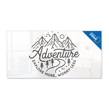Glas Magnettafel im Querformat Motiv Abenteuerliche Bergskizze mit Spruch