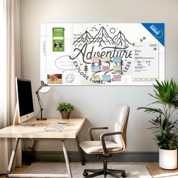 Die banjado Glas Magnettafel mit dem Motiv Motiv Abenteuerliche Bergskizze mit Spruch verbindet Funktionalität mit Stil. Sie ersetzt das Zettelchaos durch klare Strukturen und bringt dabei eine warme, natürliche Atmosphäre in Ihr Zuhause. Ob im Büro, in der Küche oder im Eingangsbereich - dieses Design-Board zieht Blicke an und sorgt für Ordnung mit Charakter.