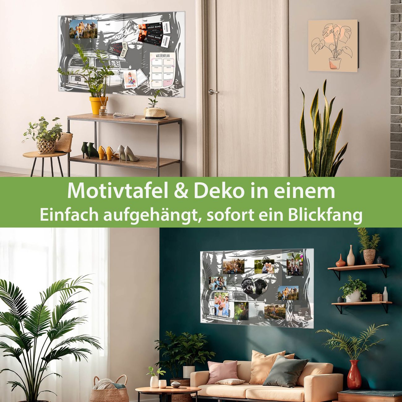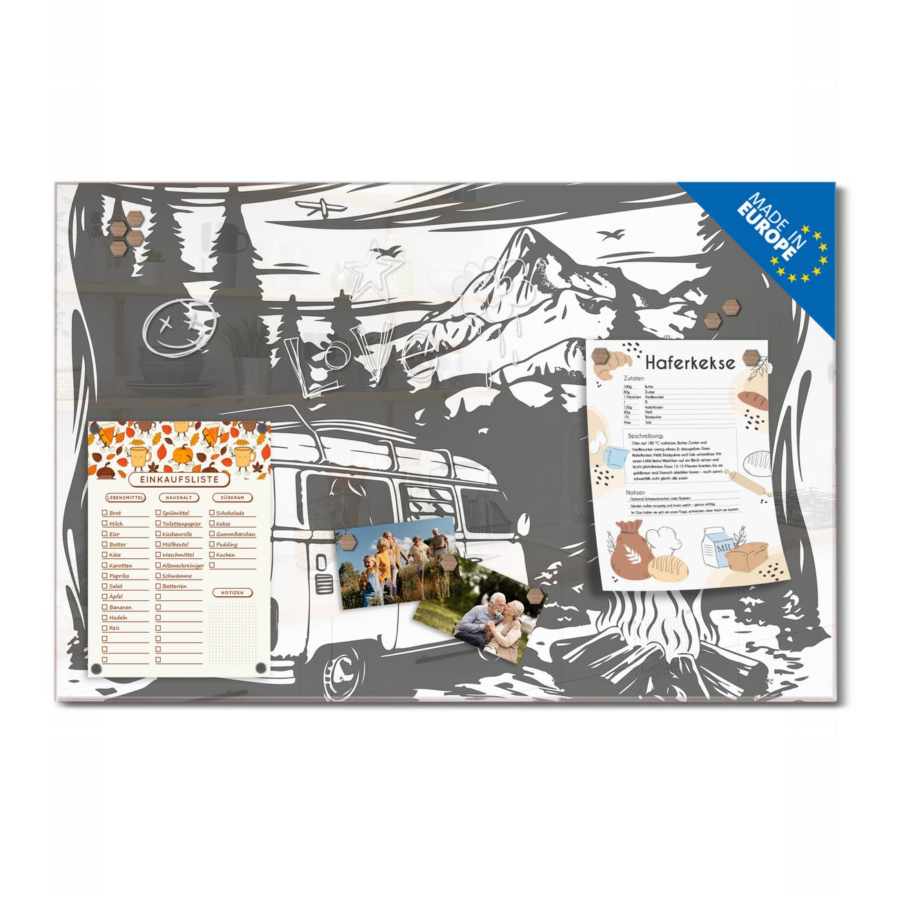 Ein Stück Design, das Ihren Alltag organisiert. Schreiben, heften, inspirieren - alles an einem Ort. Qualität, die man spürt. Montage leicht gemacht. Handwerk mit Herz - veredelt in Sachsen. Einzigartiges Design mit Motiv Motiv Abenteuerliche Campingszene Beschreibbare Glasoberfläche, leicht zu reinigen Starke Magnetkraft durch Stahlrückwand Inklusive 4 Neodym-Magneten Flexible Montageoptionen Handveredelt in Sachsen - Qualität, die bleibt