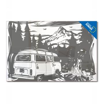 Glas Magnettafel im Querformat Motiv Abenteuerliche Campingszene